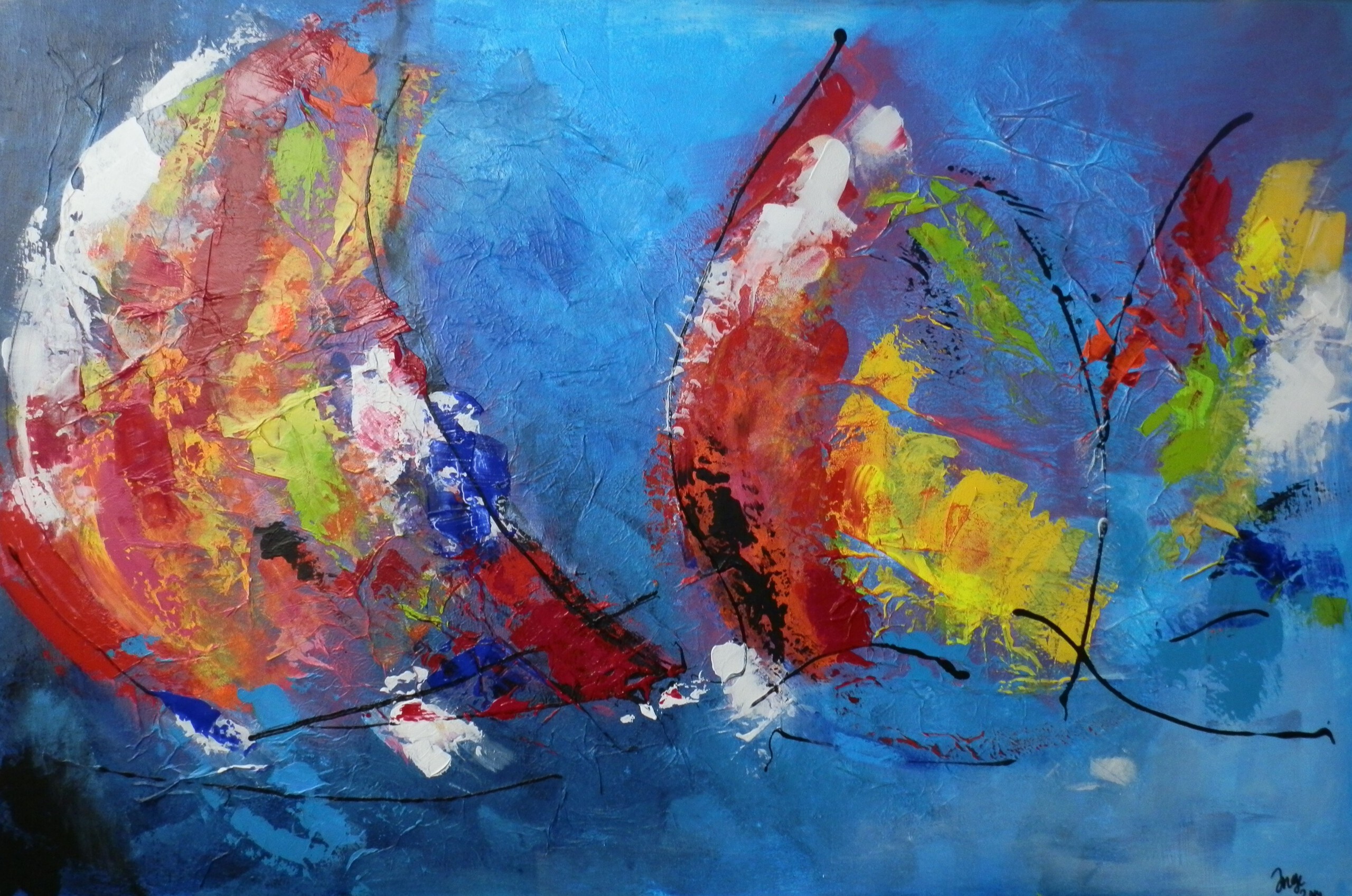 Ik schilder vanuit een brede interesse vooral kleurige werken. Losjes, vaak figuratief op een wat groter doek, met grote kwasten en/of een schildersmes Plezier en enthousiasme staan voorop.