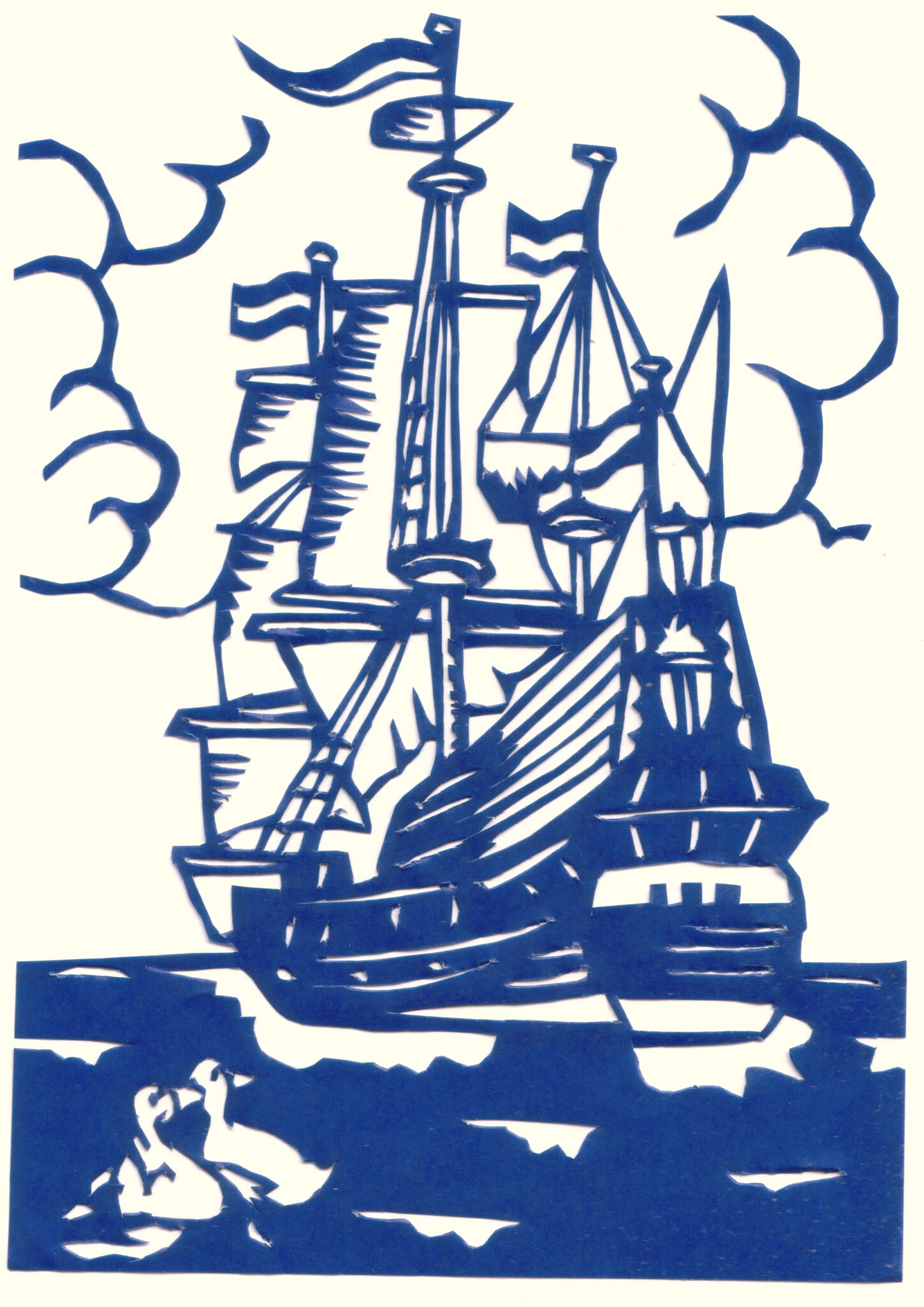 Gouden Voc Eend Eeuw Decoupage Driemaster Knipkunst Cutout Knipsel Knipwerk Papierknipkunst Papercut Scherenschnitt Zeegat