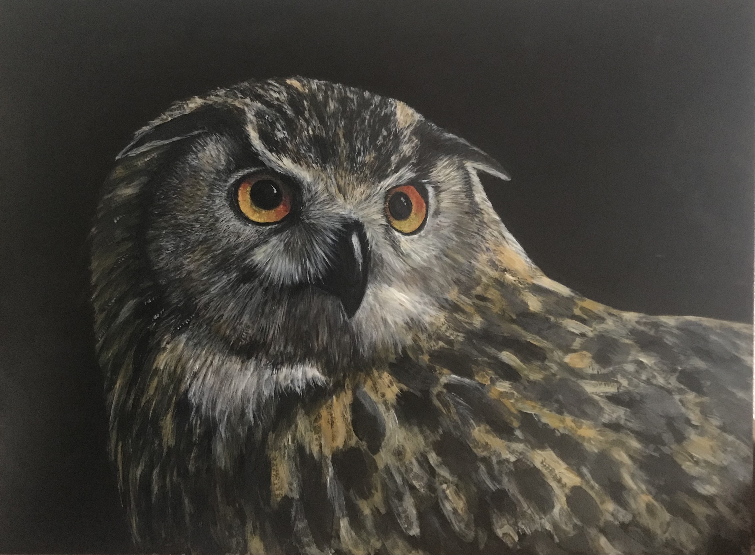 Ransuil op paneel met klassieke lijst van lijstenmaker