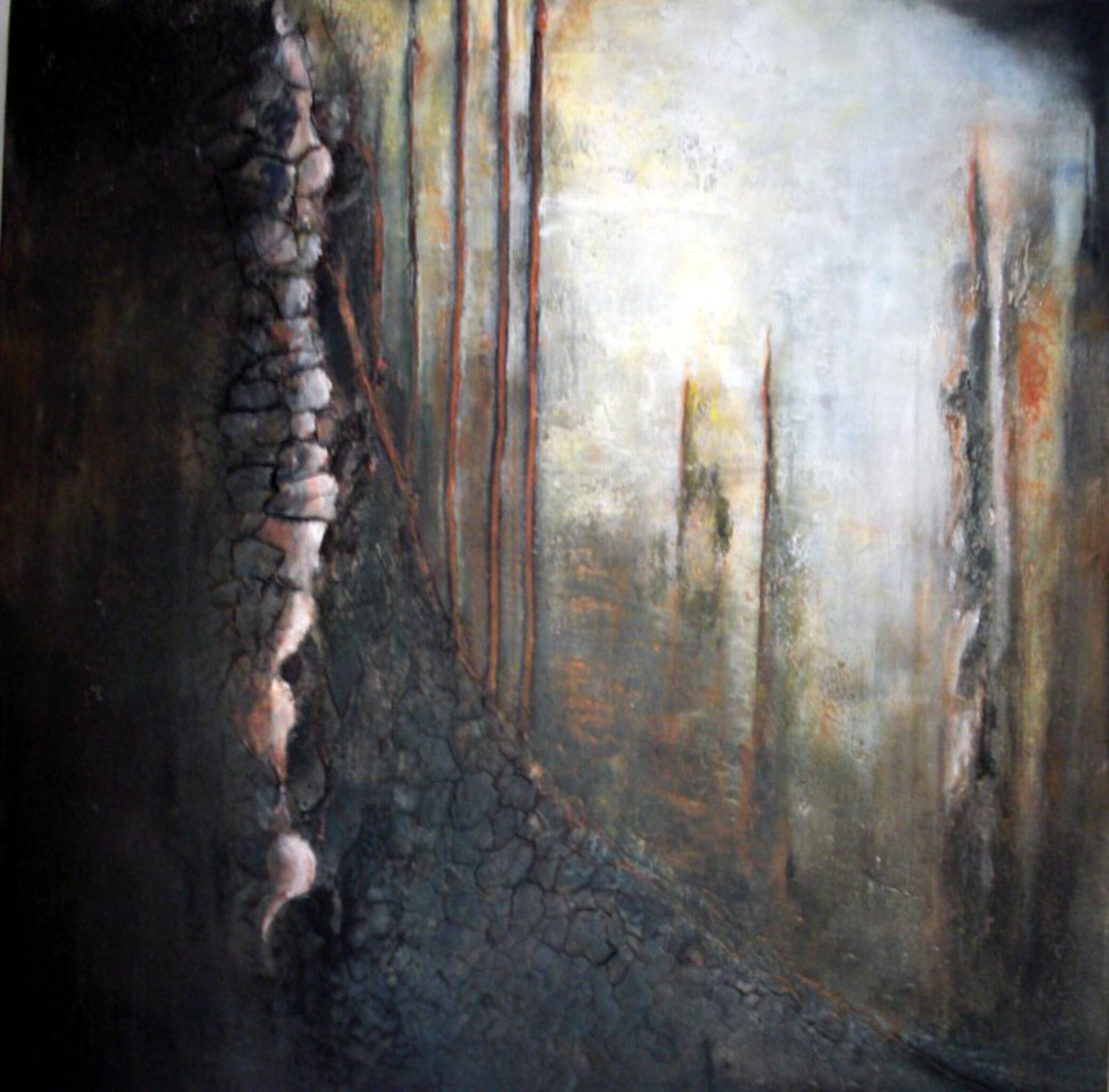 craquele -proces is uitgangspositie.Iedere keer doet zich iets onverwachts voor. Inspiratie voor weer andere kleuren of weer nieuwe structuren.