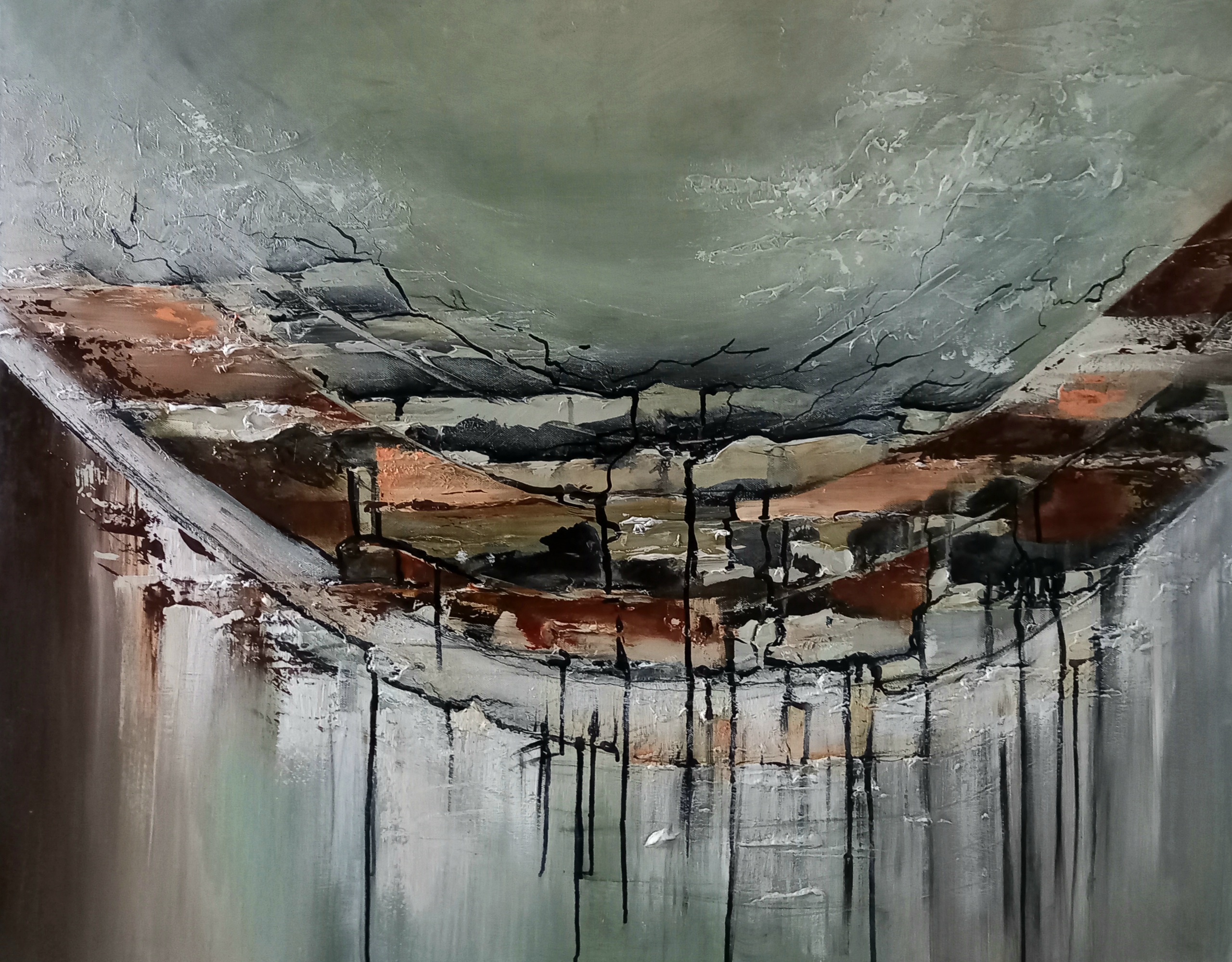 Een abstract werk op linnen. Door gebruik van modelleerpasta heeft dit werk veel structuur en door gelaagdheid van de verf komt dit gedurende het maakproces steeds meer op de voorgrond. Het schilderij oogt stoer en krachtig, ook door de dikte van het doek (4 cm).