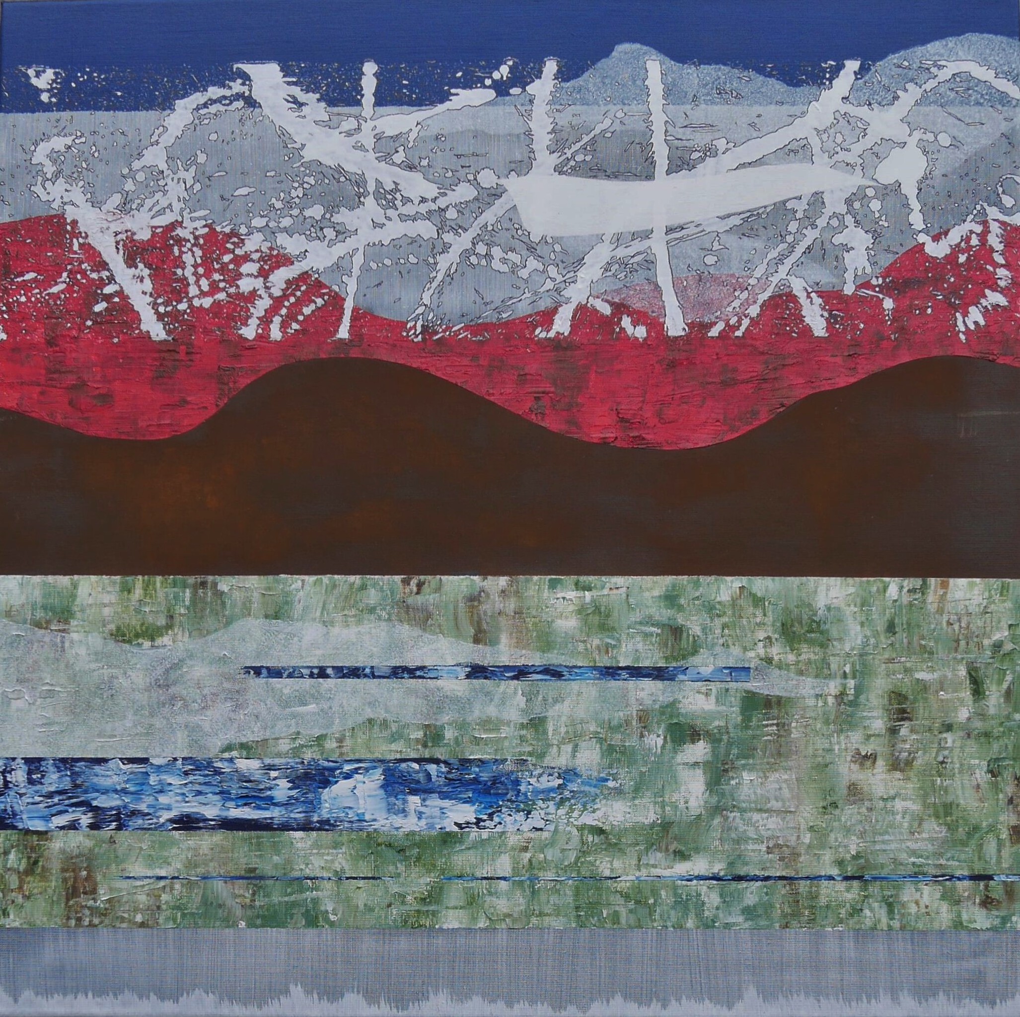Abstract schilderij uitgevoerd in Olieverf en Inkt op Linnen. Mijn werken zijn geïnspireerd op de natuur en/of architectuur. Ingelijst in een stalen baklijst en gesigneerd.