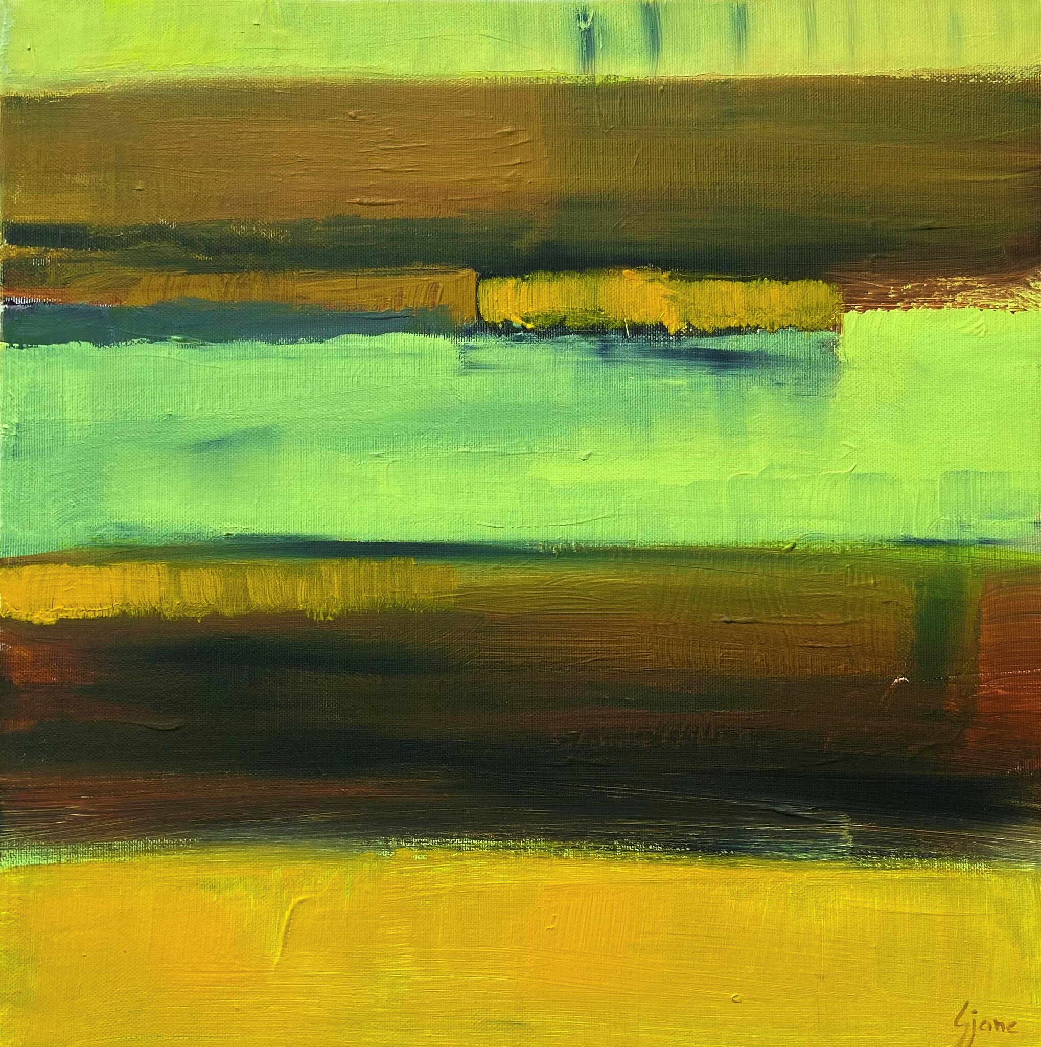 Afm. 40x40 De eerste van een nieuwe serie abstracte landschappen Verkocht