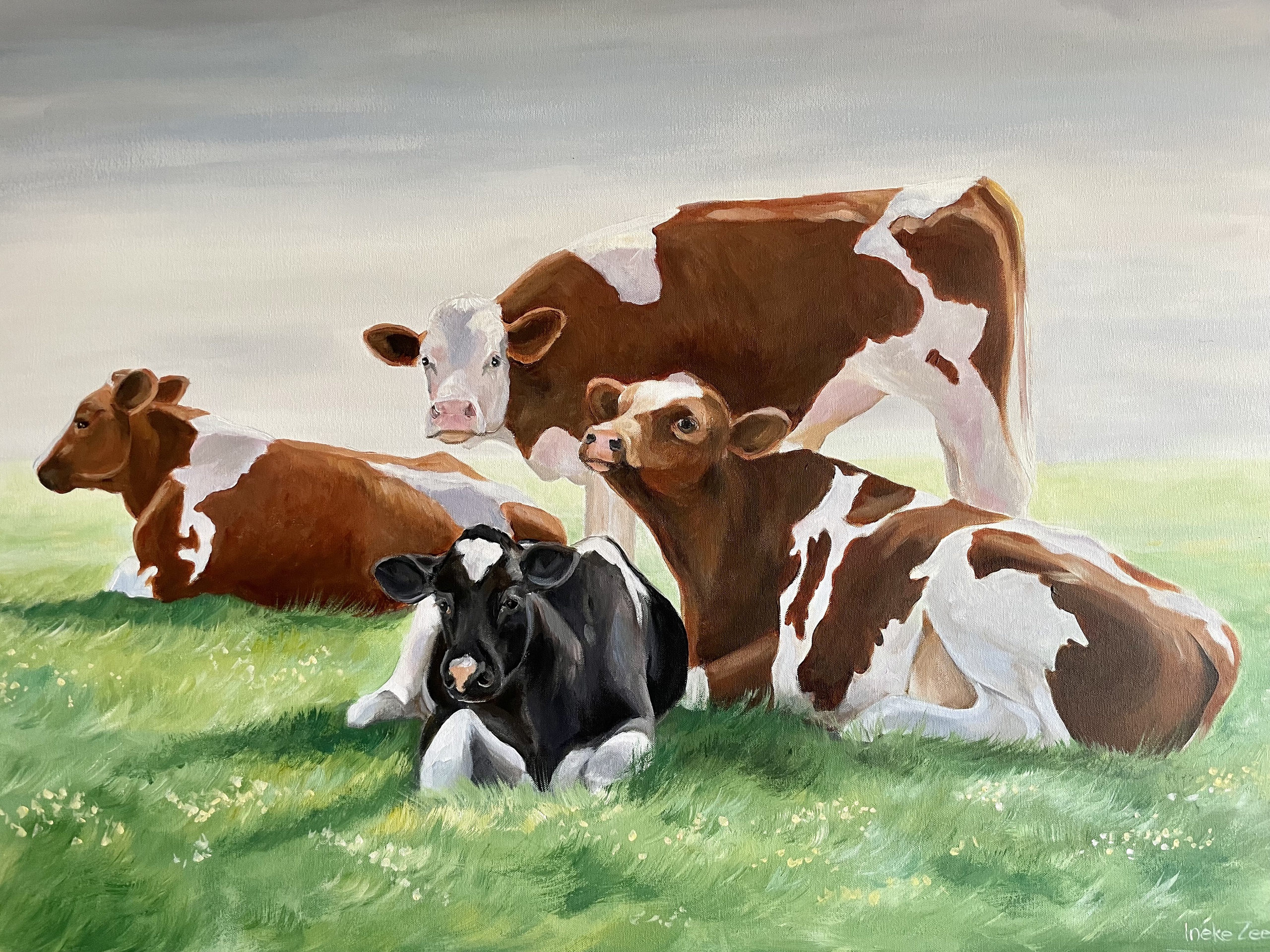 Wit Groen Koe Acrylverf Bruine Koeien Roodbont Friese Natuurlijk Os Koeienschilderij Schiedam Holstein Middendelfland Kethel
