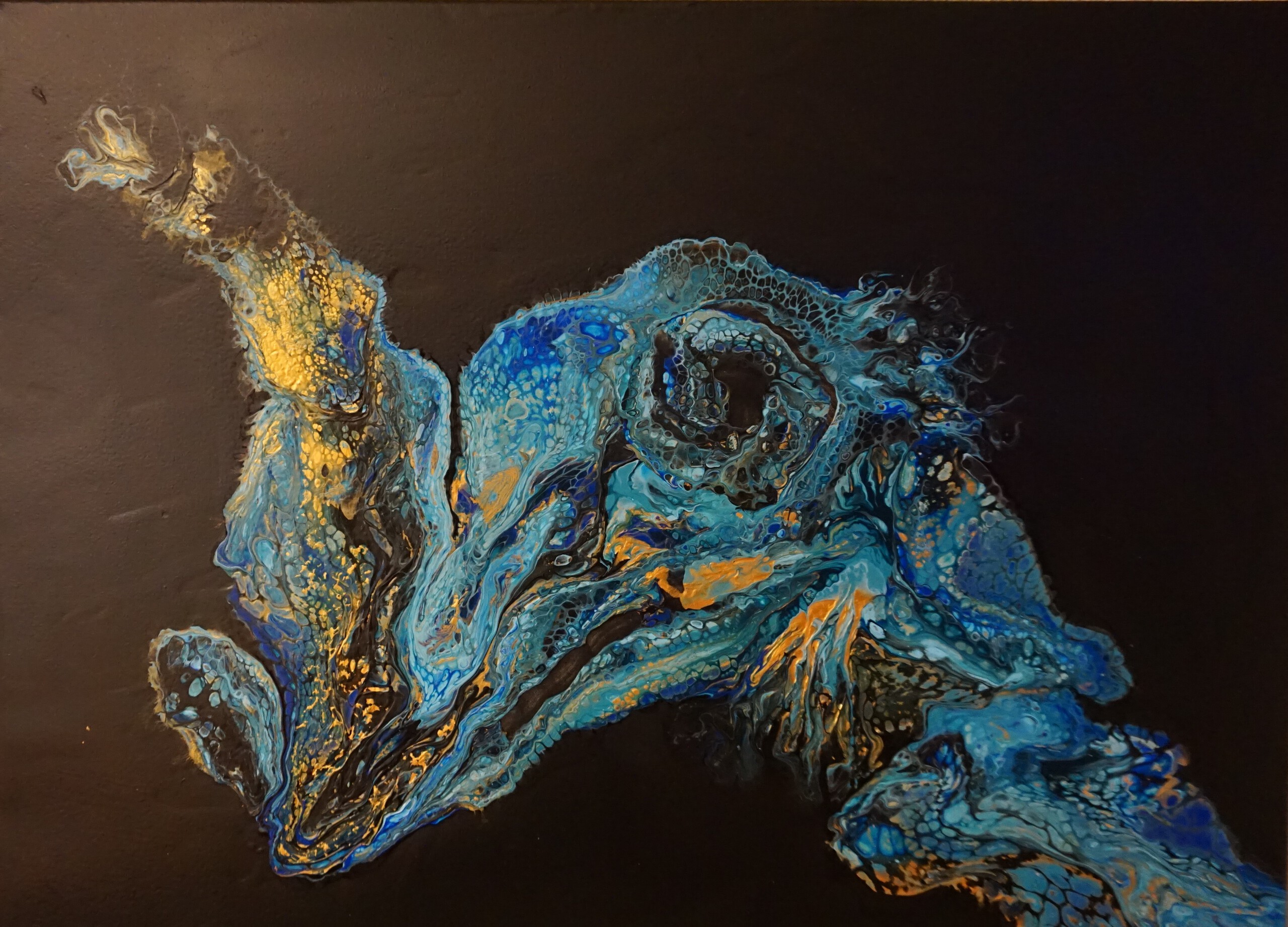 Surreeel Blauw Goud Acrylic Pouring