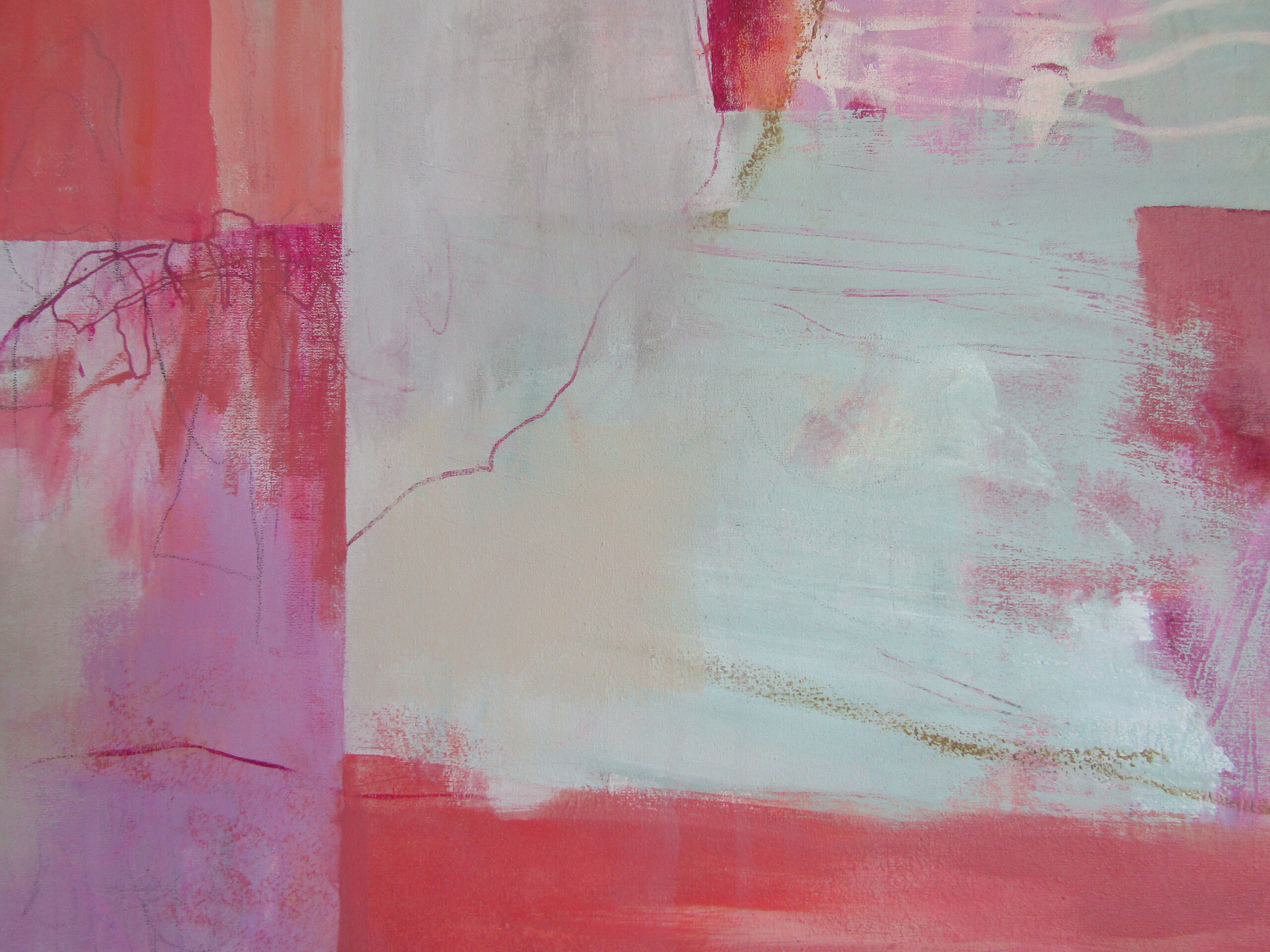 Oranje Roze Groen Abstractie Landschappelijk Colorfield Geometrisch Poëtisch Lyrisch Acryl Mixedmedia Abstract Natuurbeeld