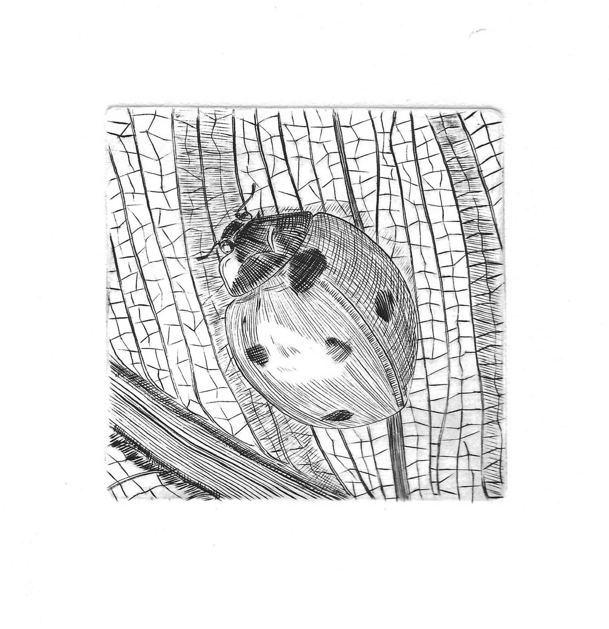 Koper gravure van een Lieveheersbeestje.
