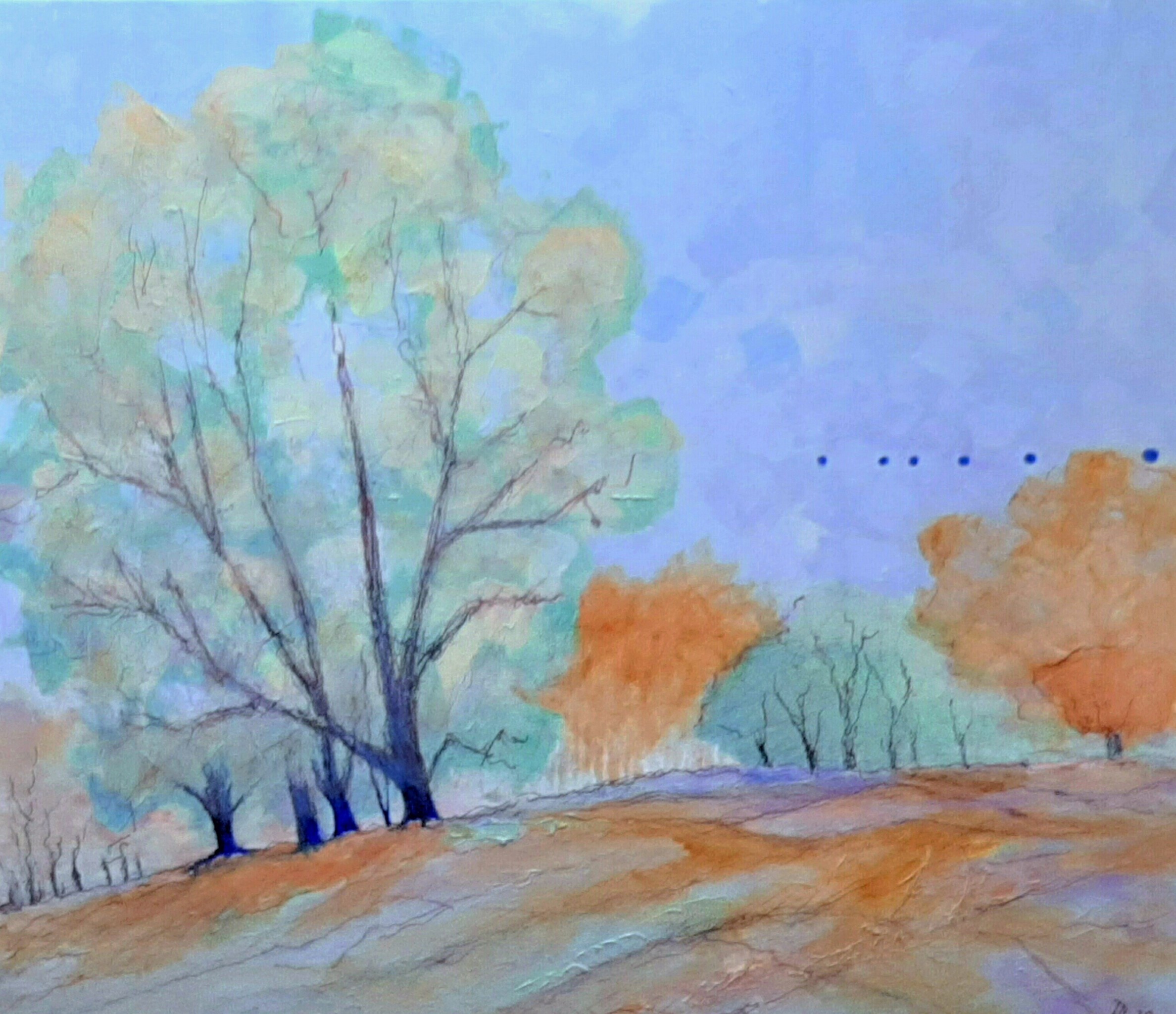 In mijn werken staat het landschap centraal wat op geheel eigen wijze wordt weergegeven in mixed media.