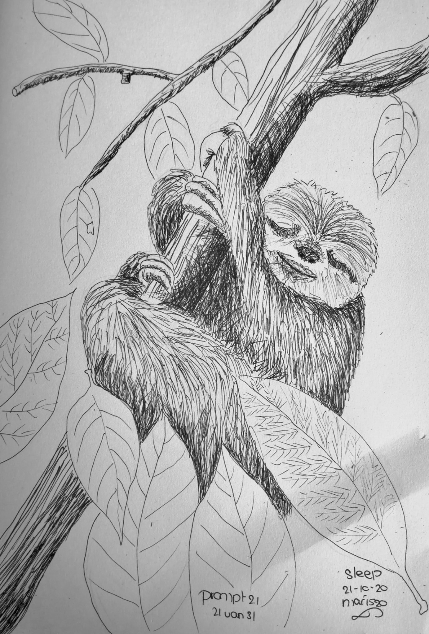 Luiaard Slaap Lui Inkt Inktober Tekening