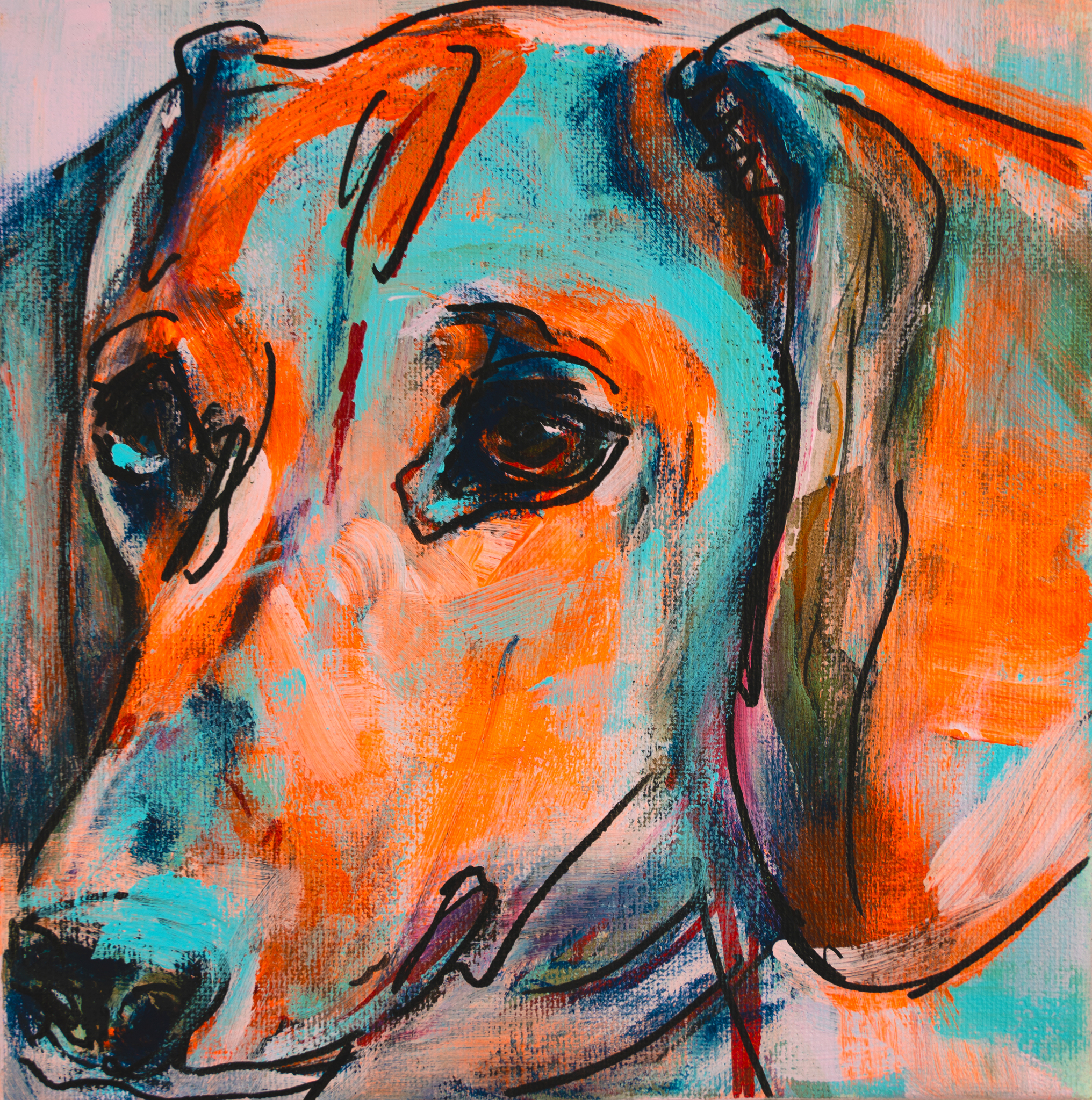 Schilderij Klein Portret Bruin Hond Kleur Huisdier Teckel Print Lief