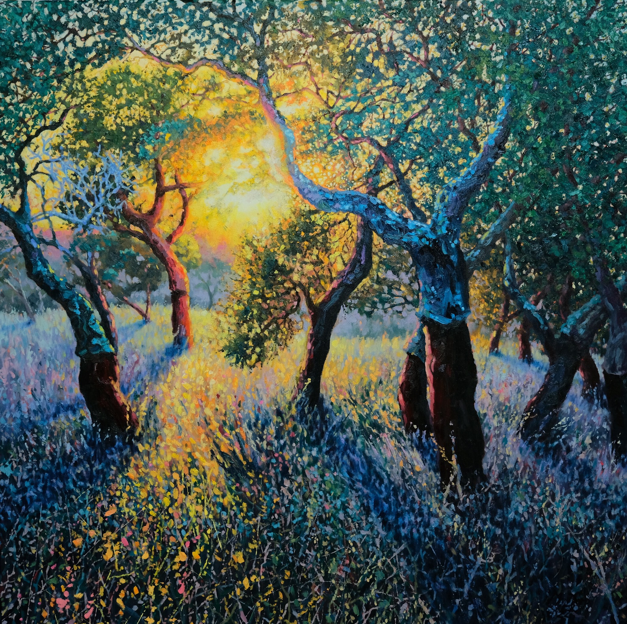 Zonsondergang Olieverf Impressionistisch Portugal Kurkeiken Corktrees