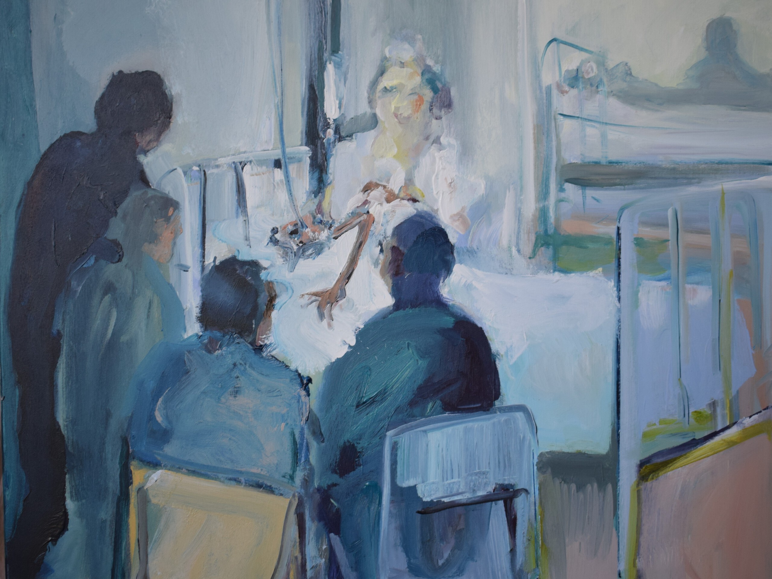Een impressie van terminale patient in het ziekenhuis.Een beeld gemaakt naar herinnering van een afscheid.
