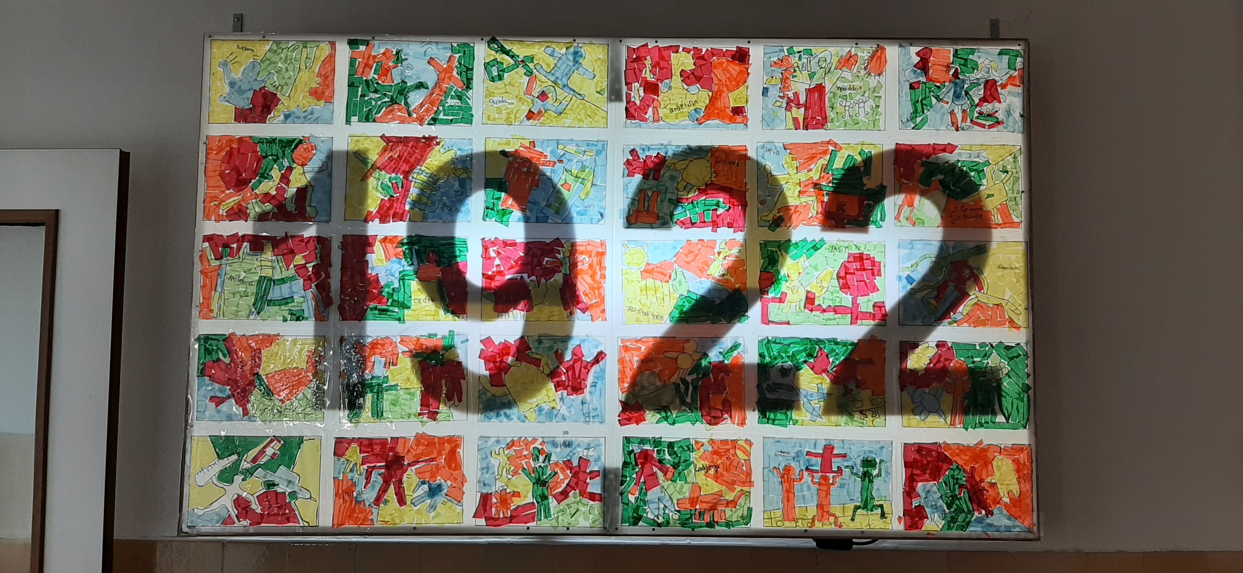 Groep Hout Glas Art Licht Lood In 3 Collage Kinderen Pop Kunstwerk Installatie Reclame School Polyester Haring Permanent Workshop Polyster Wandinstallatie Lagere Kieth