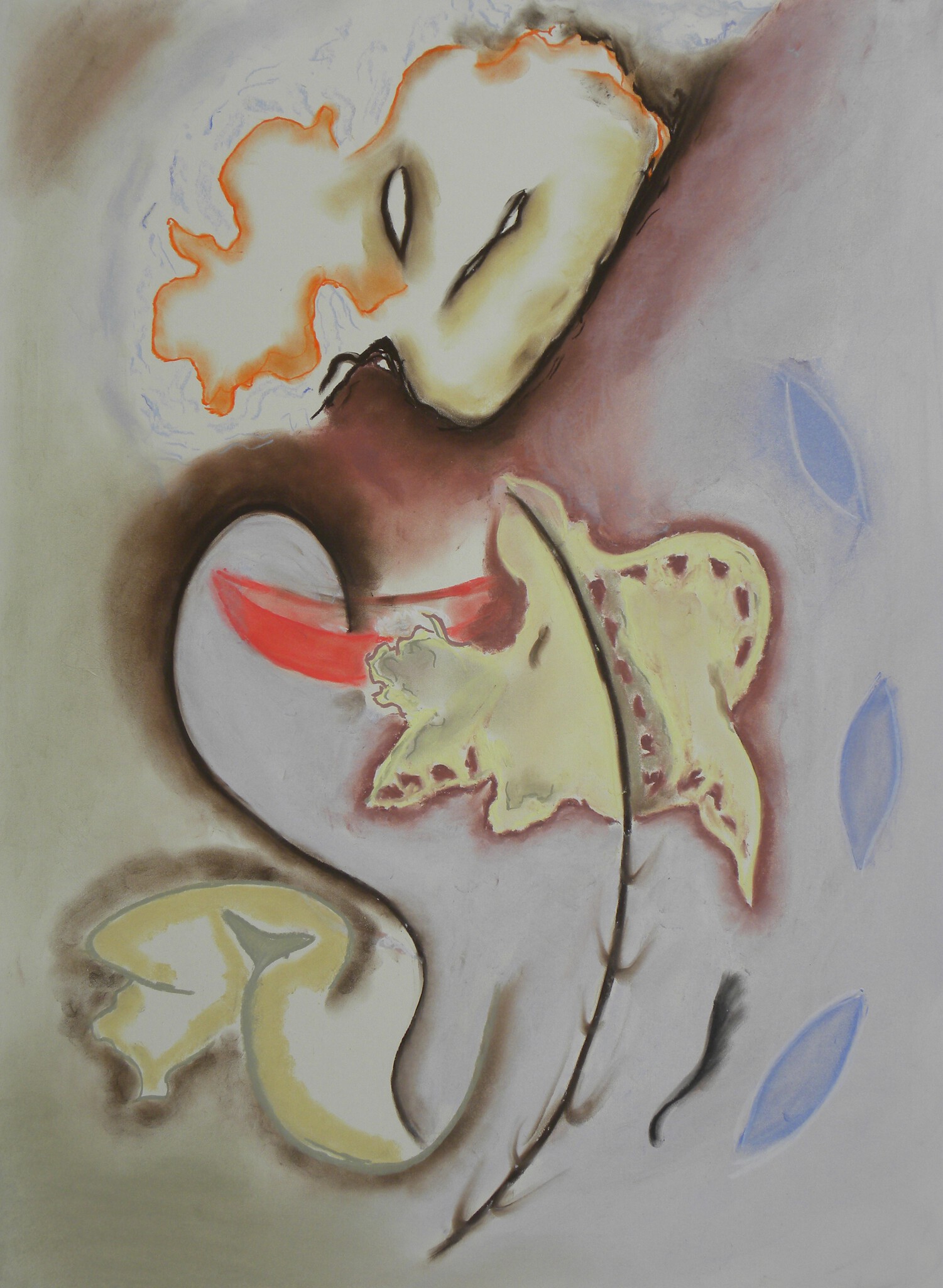 Een pasteltekening op groot formaat.De figuratie is abstraherend om de poetische kracht van het werk te benadrukken.