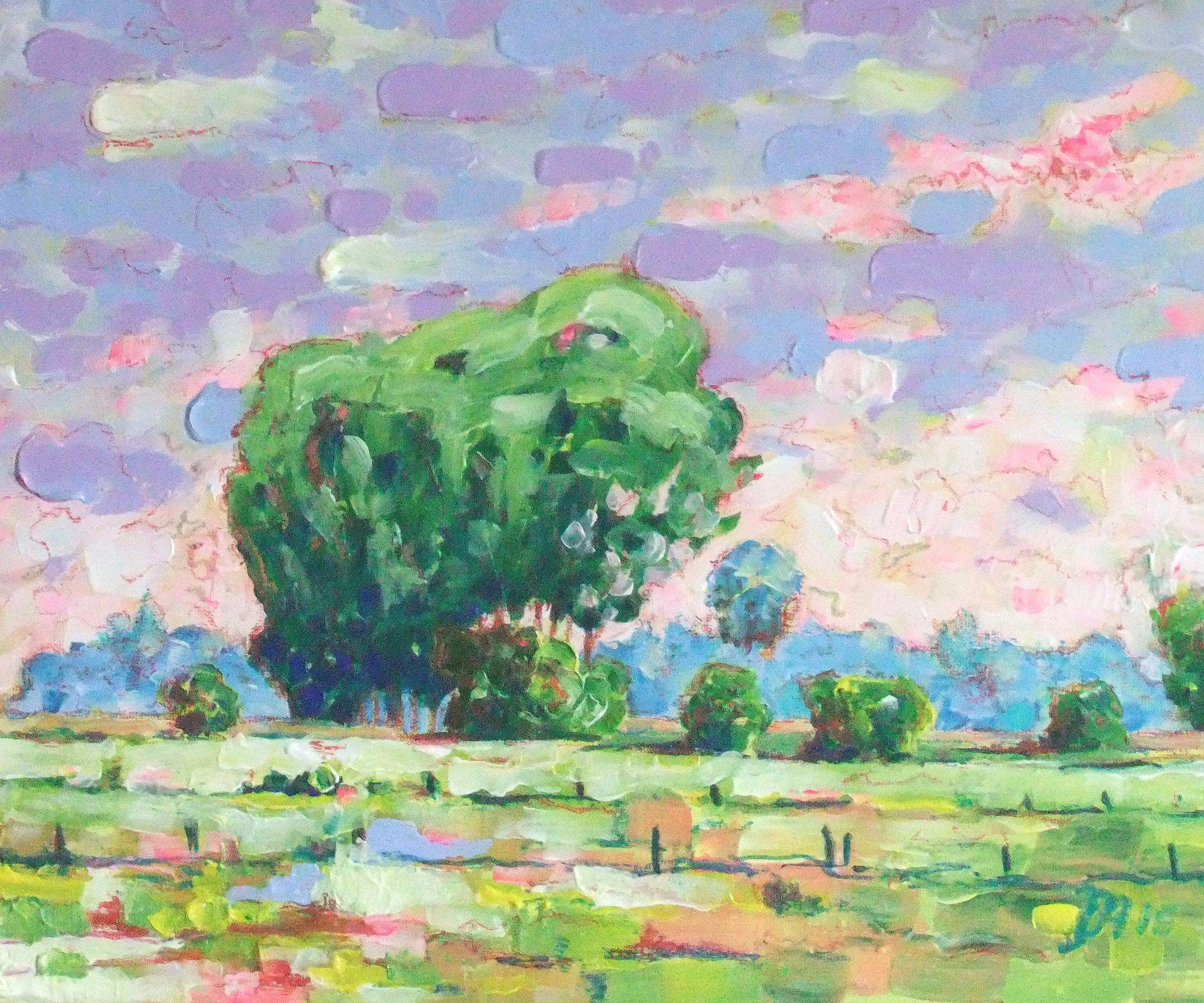 In mijn werken staat het landschap centraal wat op geheel eigen wijze wordt weergegeven in mixed media.