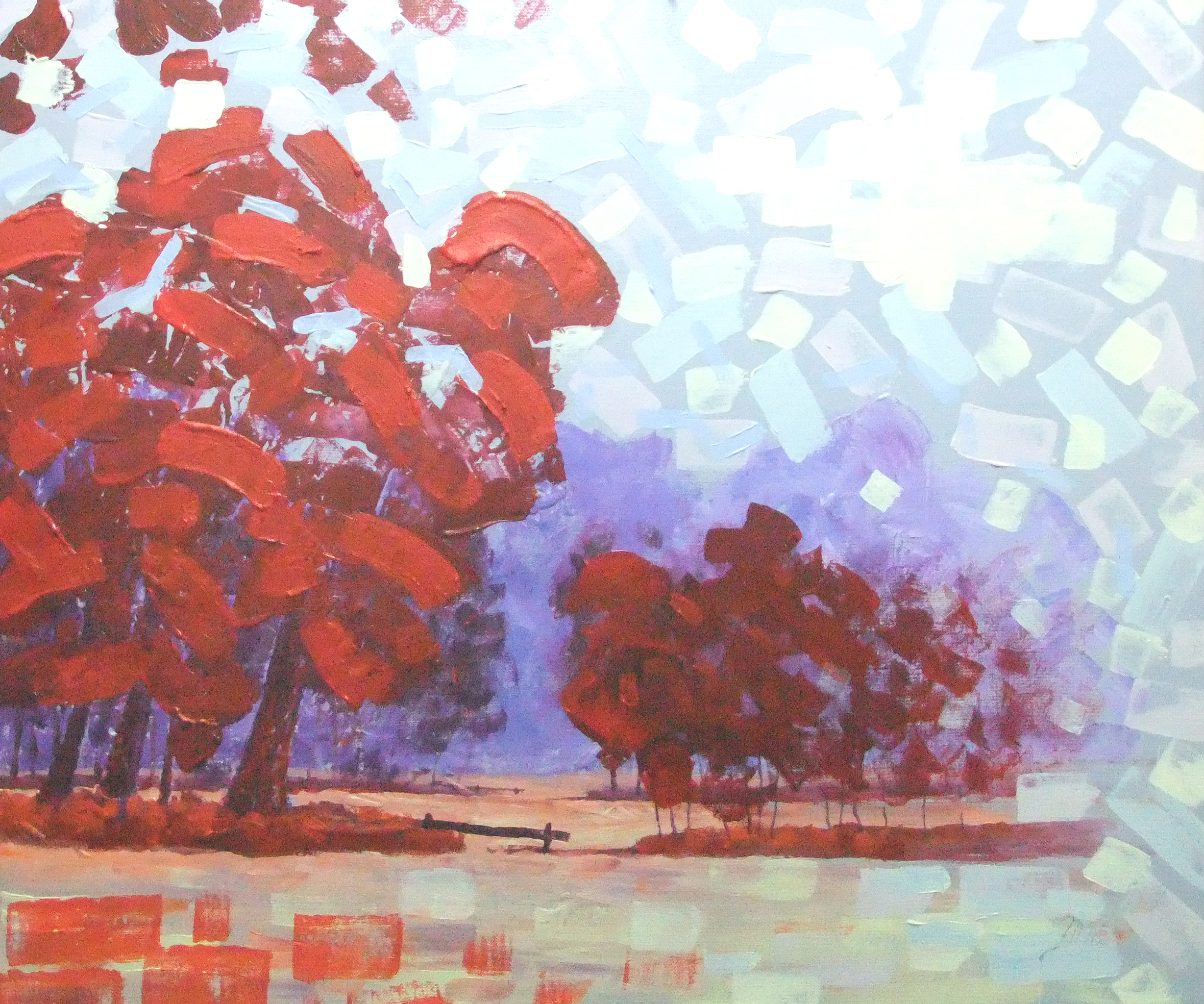 In mijn werken staat het landschap centraal wat op geheel eigen wijze wordt weergegeven in mixed media.