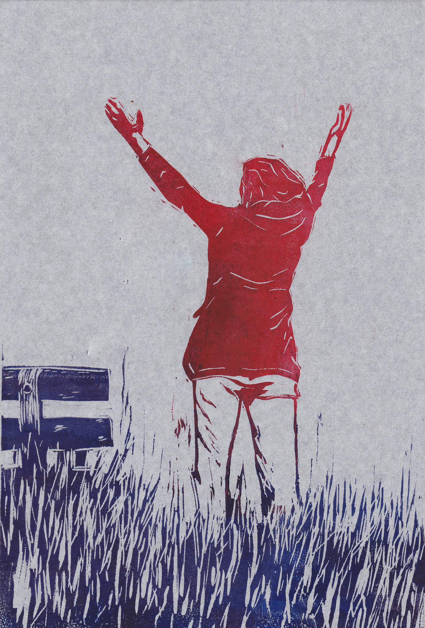 Leef! Diepe slaap. Lino snede gedrukt in inkt op Wenzhou 30 g/m2 rijstpapier. Afbeelding 30 x 20 xm Papier 41 x 28,5 cm