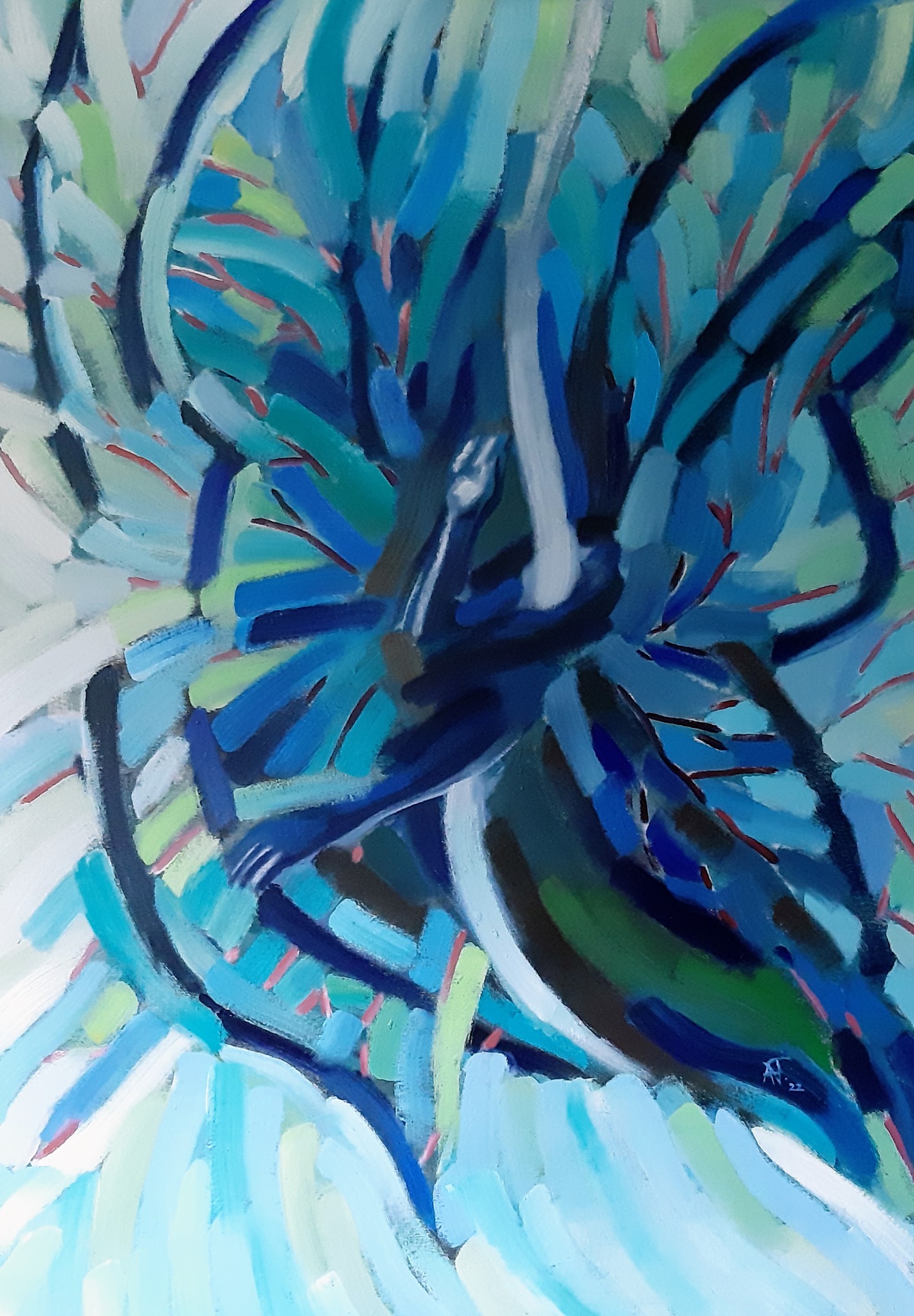 Metamorfose Ontwikkeling Natuur Olieverf Doek Blauw