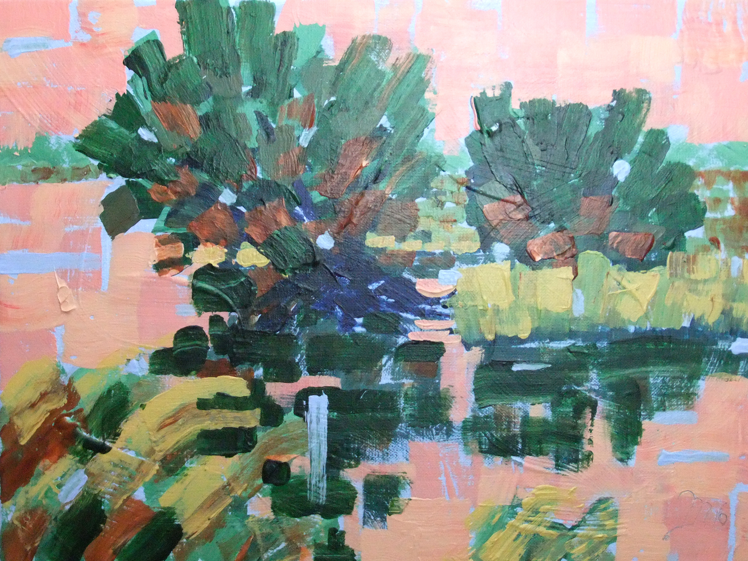 In mijn werken staat het landschap centraal wat op geheel eigen wijze wordt weergegeven in mixed media.