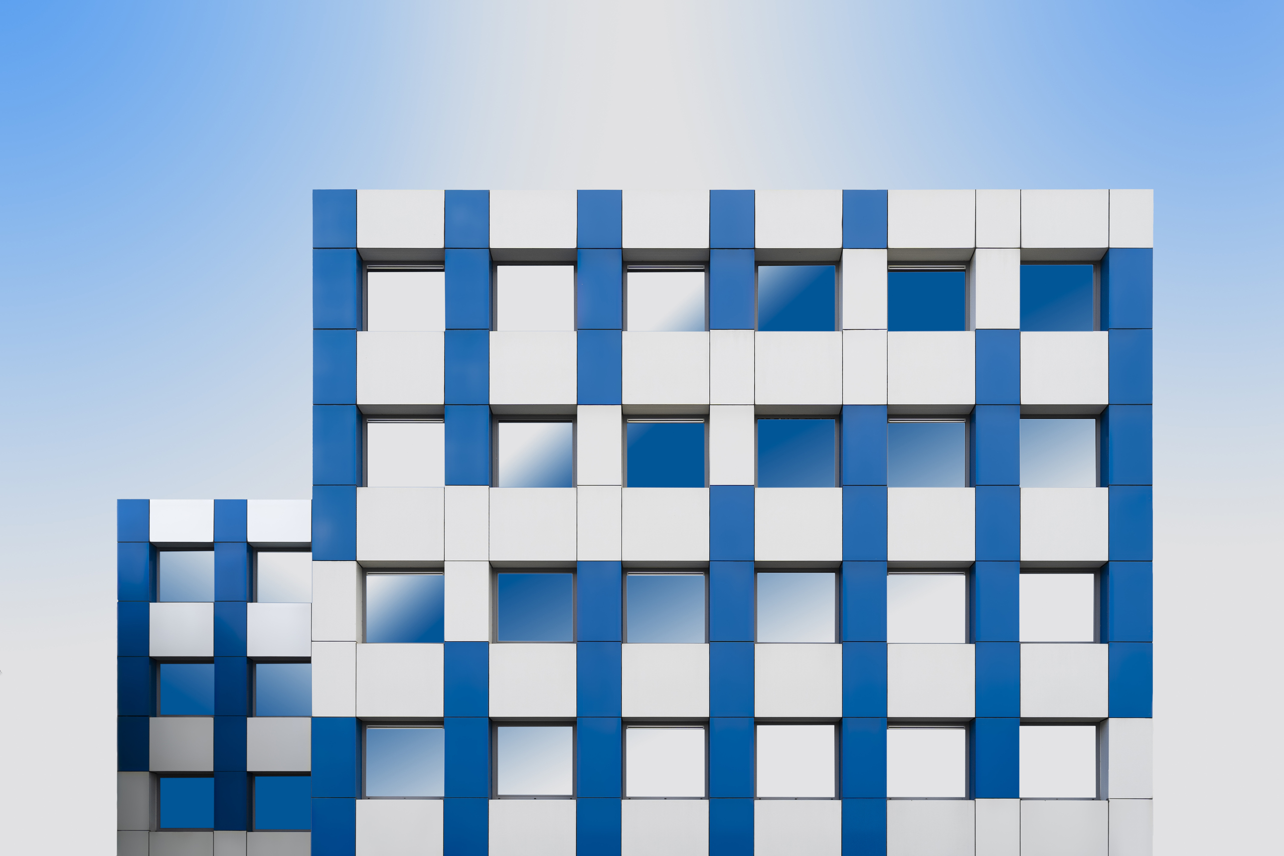 Geblokte gevel in blauw