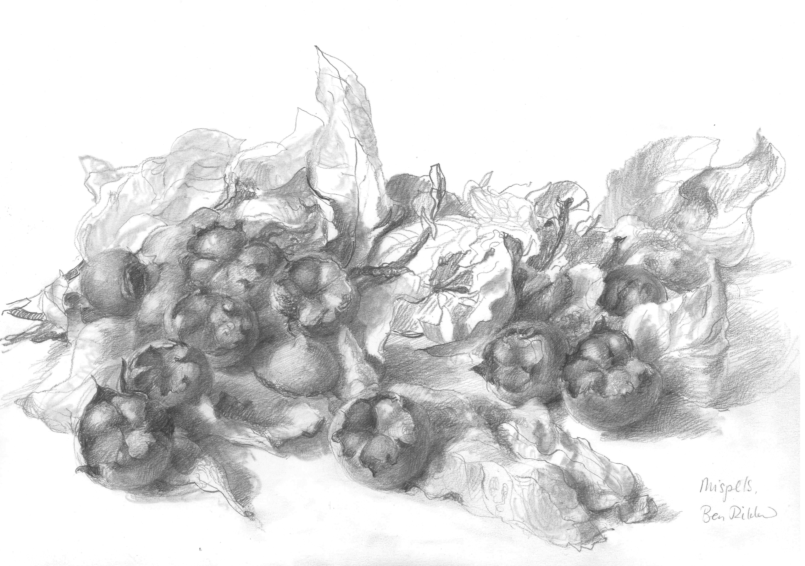 studie van mispels, met of zonder blad Zie ook : https://www.benrikken.nl/tekeningen--divers--drawings-diverse