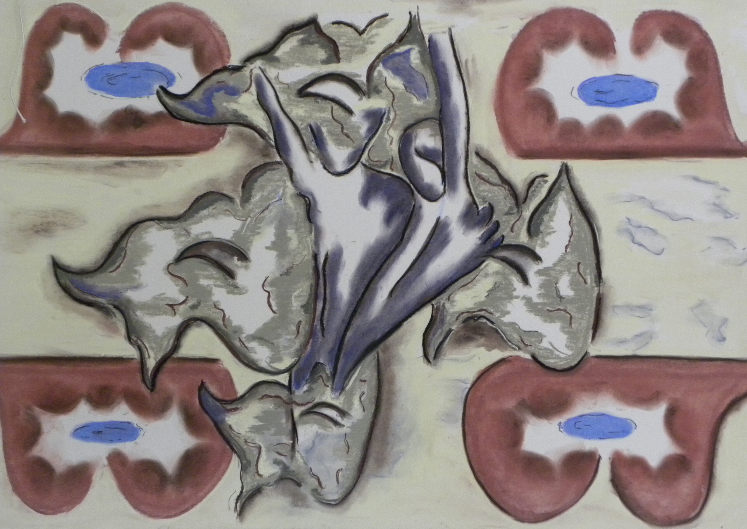 Pasteltekening op groot formaat. Thematiseert de euforie van de liefde.