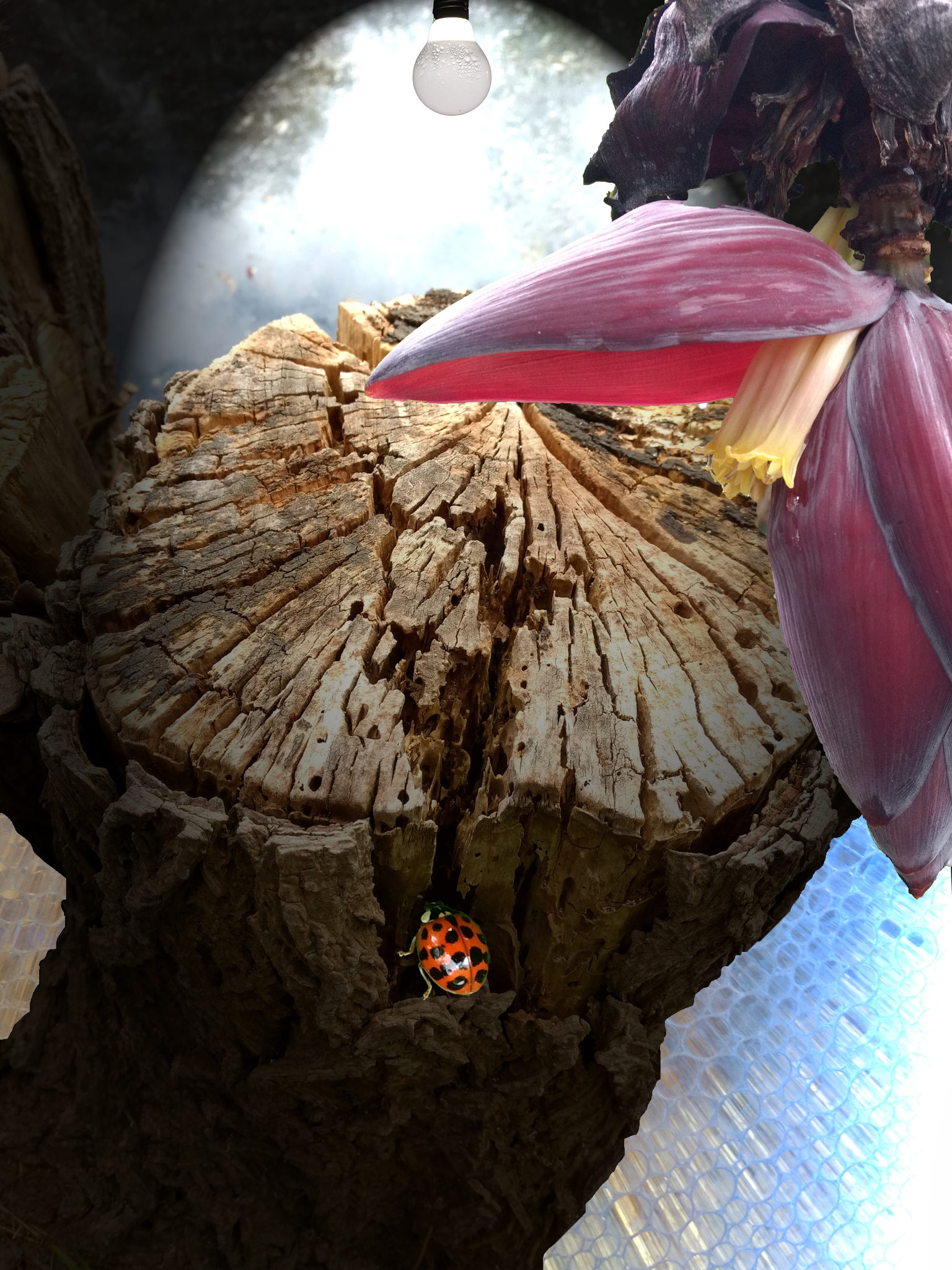 Dit zelfportret is een goede representant van mijn aluprints: diverse digitaal bewerkte foto-elementen die samen één verhaal vertellen, met of zonder gedicht.