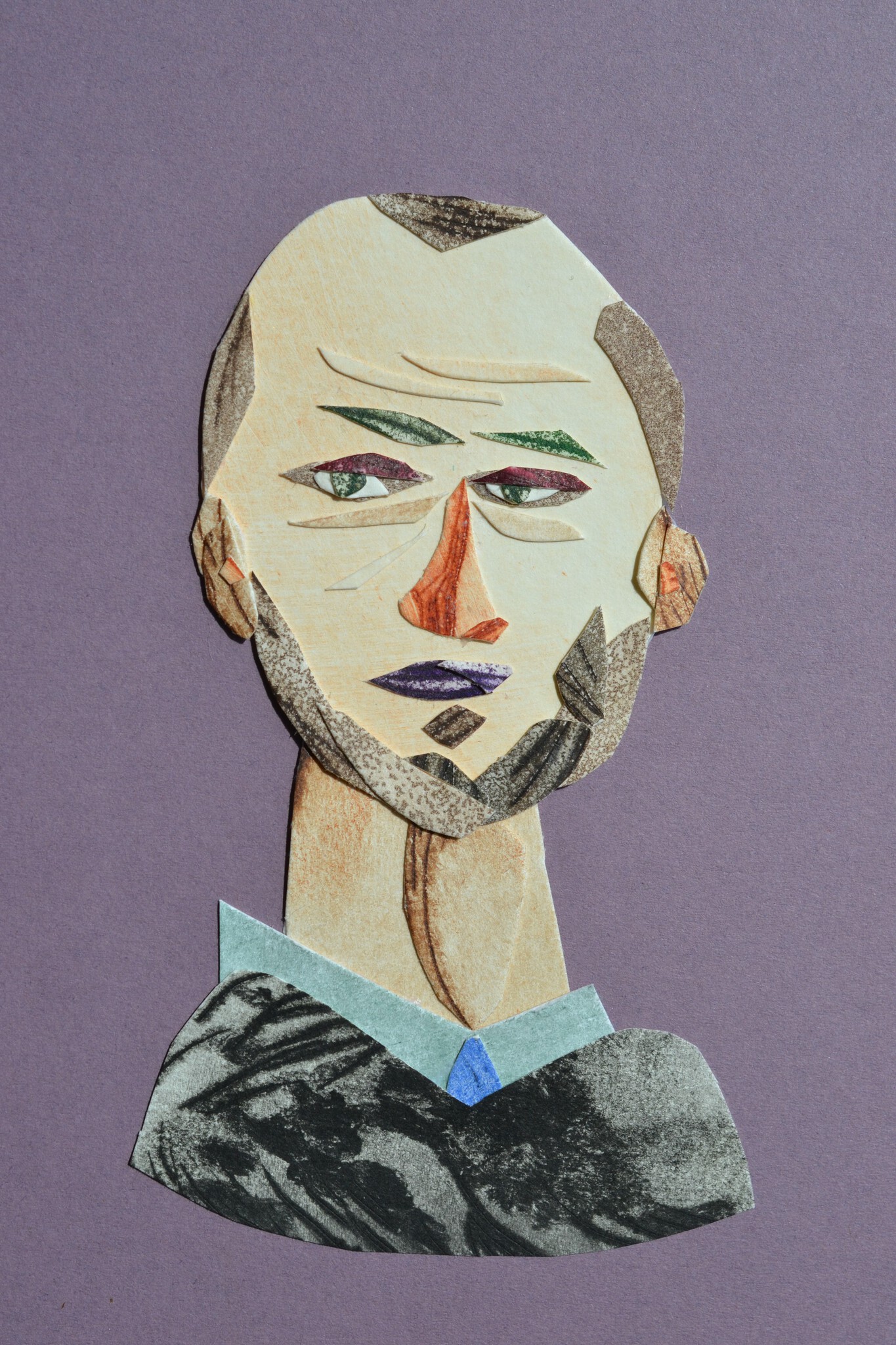 Robert - collage van verknipte drukken van mijn vroegere etsen - collage réalisé avec mes anciens gravures découpées - collage made from my earlier prints - edition 1/1 in passepartout 30 x 20 cm.