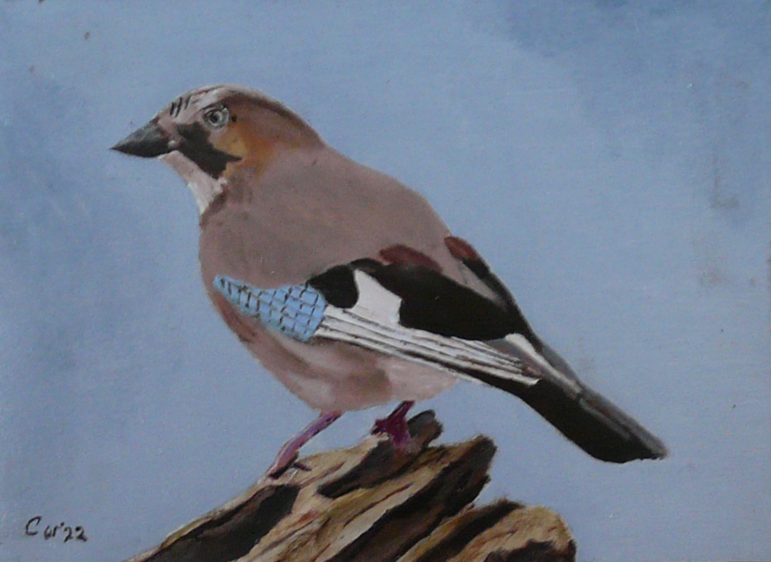 Wit Blauw Bruin Realistisch Olieverf Lijst Gaai