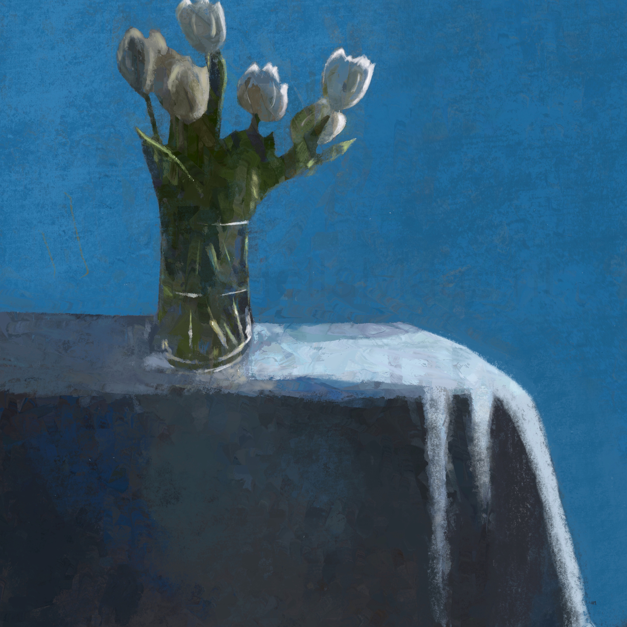 Schilderij bloemen in mixed media. Het origineel is verkocht, maar je kunt een prachtige art-print kopen op papier, canvas en 'heel mooi en modern' op dibond of aluminium. Als je vragen hebt of je wilt een kleine aanpassing in de verhoudingen zodat het net op dat ene plekje past...., aarzel niet om me een mail te sturen. Een modern bloemen schilderij in abstracte stijl. Dit stilleven schilderij met prachtige pioenrozen zijn gevangen in het avondlicht. Ook wel claire obscur of tegenlicht genoemd. Bloemenschilderijen zijn al sinds de oudheid een belangrijk onderdeel van de kunstgeschiedenis. Er zijn al veel stilleven schilderijen met bloemen van de oude meesters bekend. De realistische dromerige schilderijen Odile Redon tot het abstracte schilderijwerk van Mondriaan en Picasso. Het schilderen van bloemen is altijd een dankbaar onderwerp. Ik heb in dit schilderij van pioenrozen het licht gevangen op de bloem en de achtergrond. Donker, en toch licht. Dit bloem stilleven komt prachtig tot zijn recht als 'print op doek'. Pioenrozen schilderij / Stilleven met bloemen in abstraherende stijl.