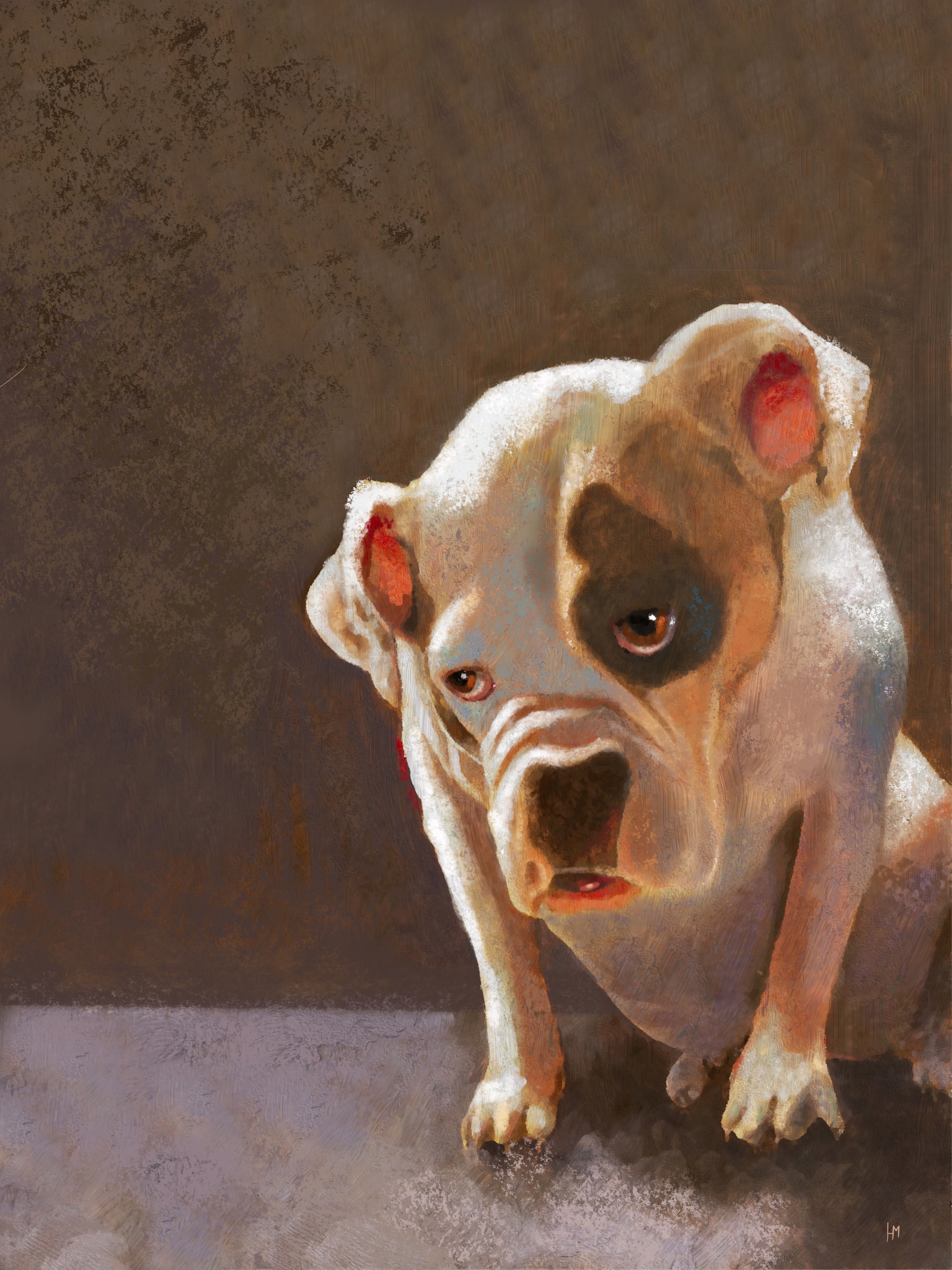 Sammy is een schilderij van een hond in olieverf. Geschilderd naar een eerder schilderij dat ik van Sammy maakte, met nieuwe kennis en inzichten heb ik de kleuren meer uitgesproken gemaakt en het contrast groter. Het origineel is verkocht, maar je kunt een prachtige art-print kopen op papier, canvas en 'heel mooi en modern' op dibond of aluminium. Als je vragen hebt of je wilt een kleine aanpassing in de verhoudingen zodat het net op dat ene plekje past...., aarzel niet om me een mail te sturen. Wilt u zelf een keer uw hond laten schilderen ? Neemt u gerust contact op. U zult versteld staan over het resultaat.