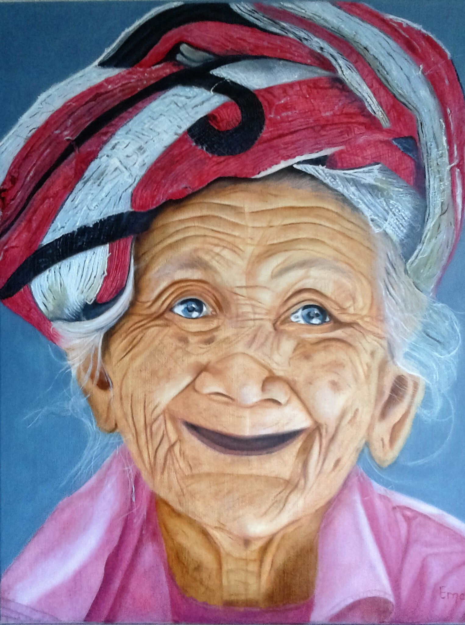 Mijn naam is Erna van den Heuvel. Kenmerk: op elk doek schilder ik ergens een klein diertje. “Ik droom mijn schilderij en schilder mijn droom” (Vincent van Gogh)