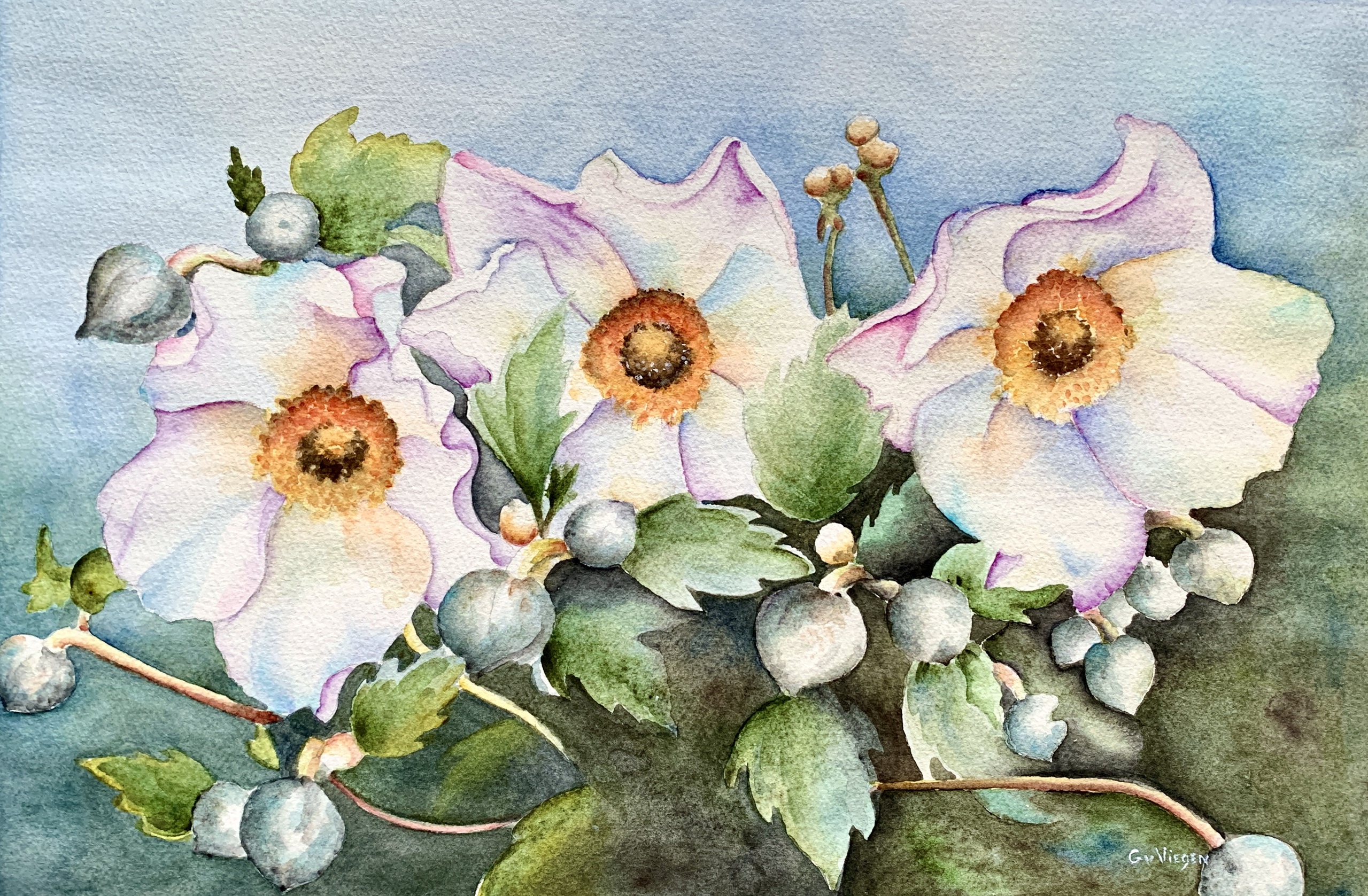 Wit Groen Bloemen Aquarel Realistisch Flowers Watercolor Anemoon Bloemenaquarel Nattur Japanseanemoon