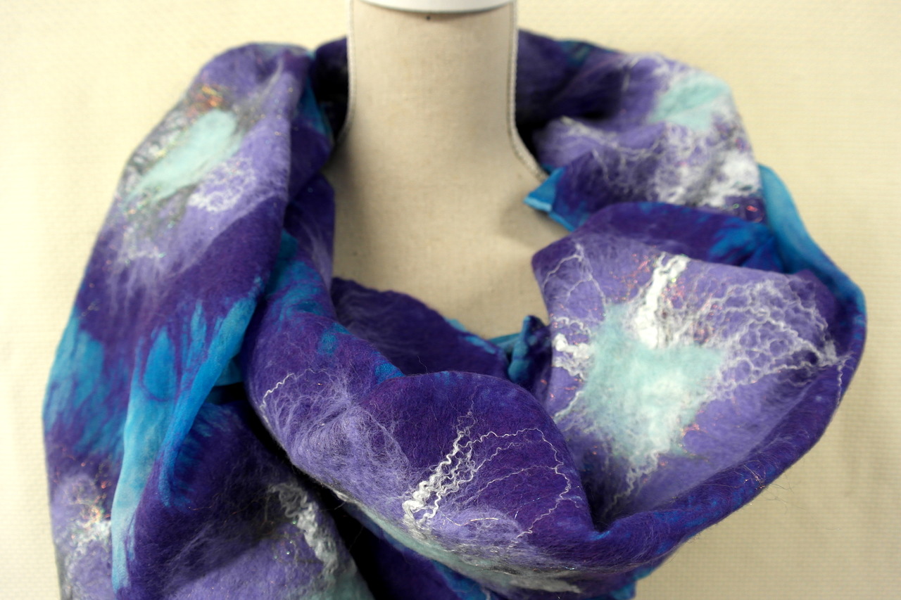Nunofelt shawl , blue purple , one of a kind