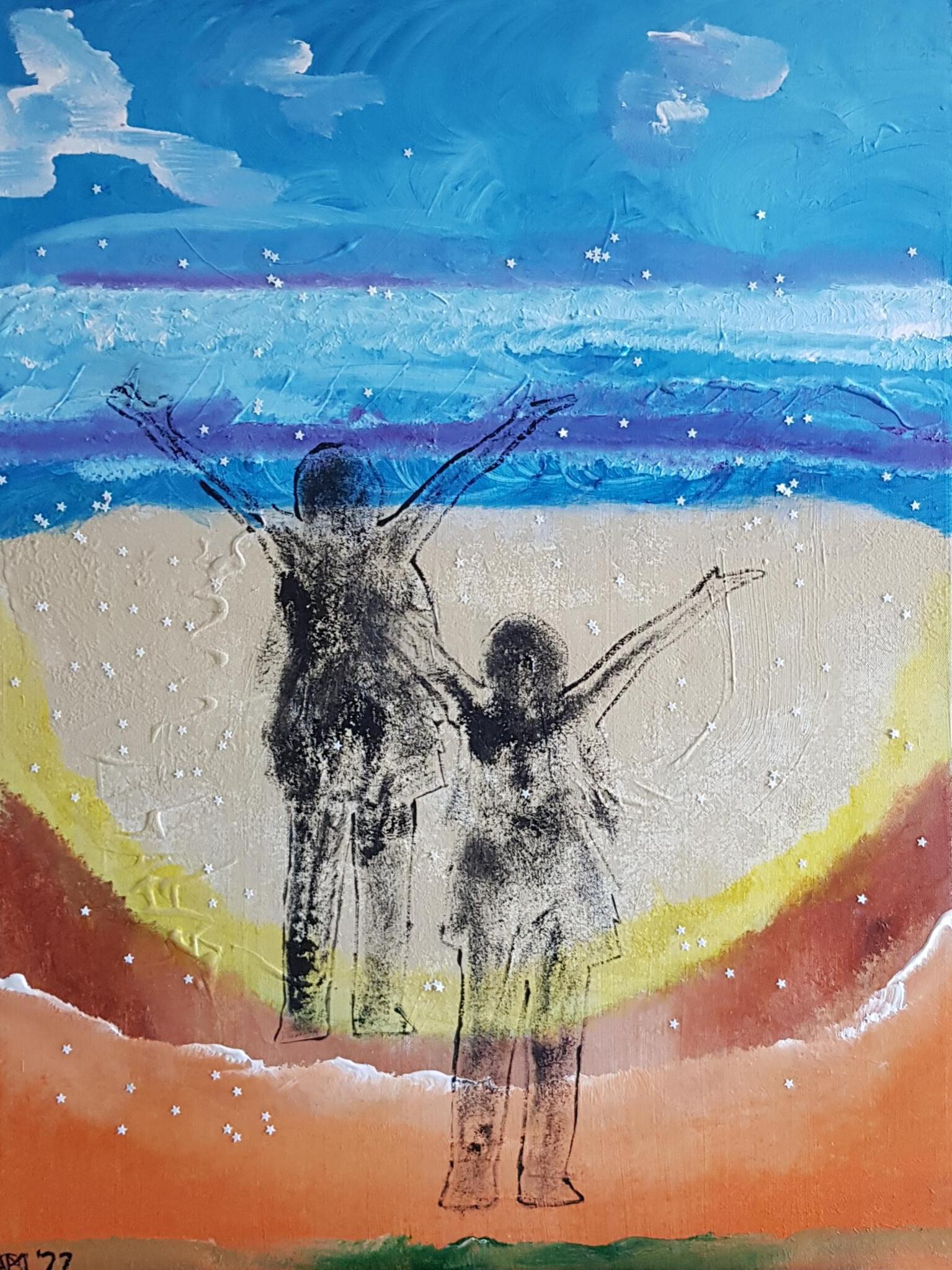 Zingende Sterren is voorzien van een "epoxylaag", tevens als beschermlaag voor de acryl die op 't doek is aangebracht.