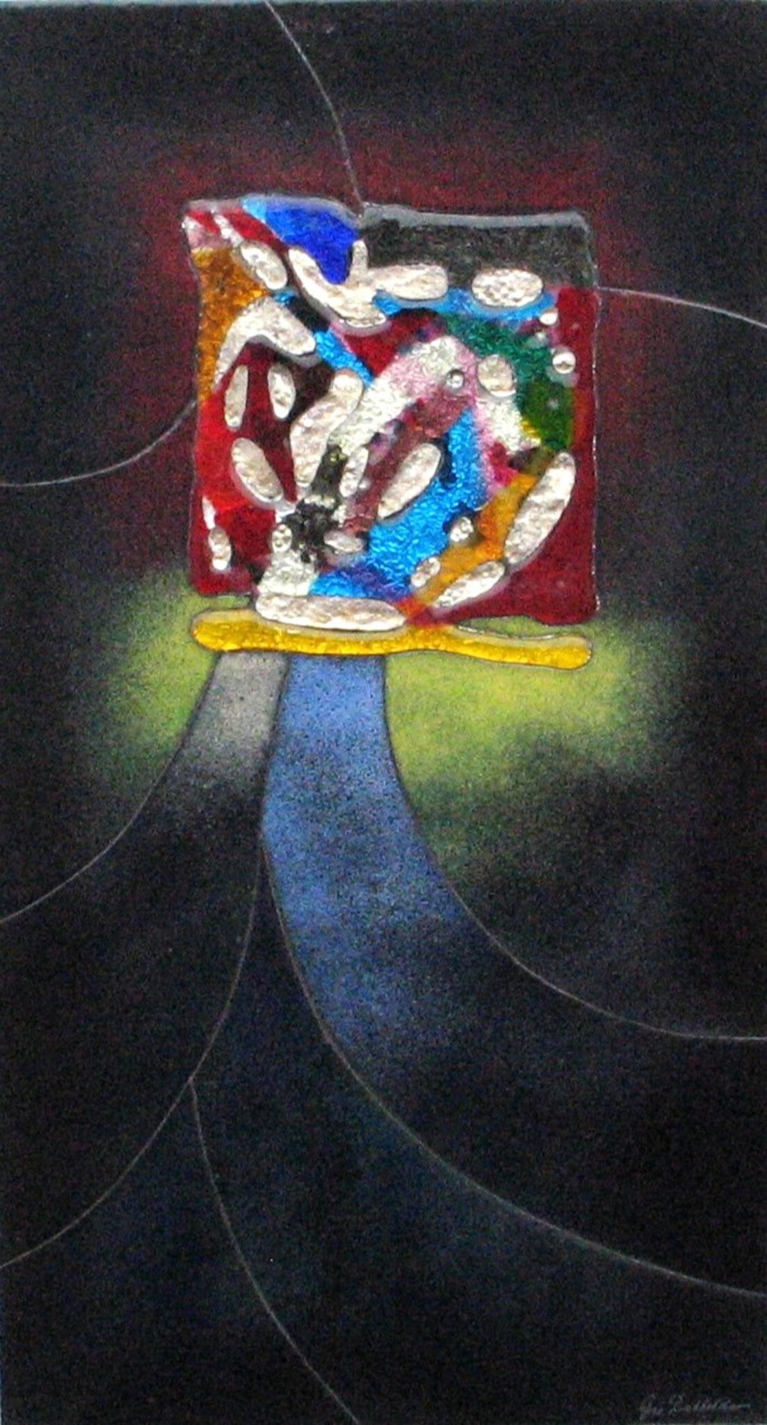 Ik ben emailleur en maak wandpanelen en reliëfs. Vaak verwerk ik er ook gefused- of brokken glas in. De zijkanten en holtes van de reliëfs werk ik af met verouderd zink.