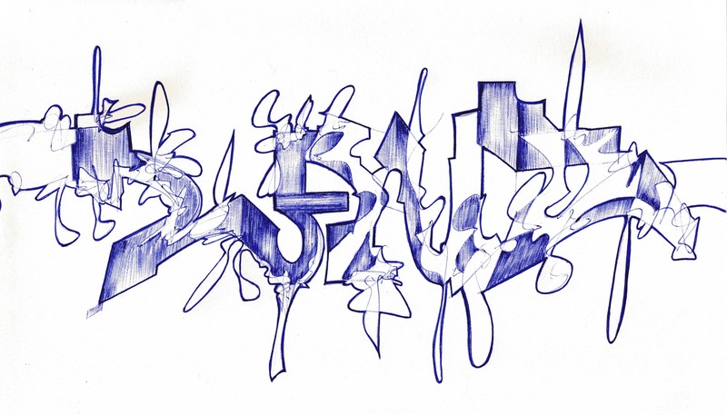 Tekening uit schetsboek met balpen.