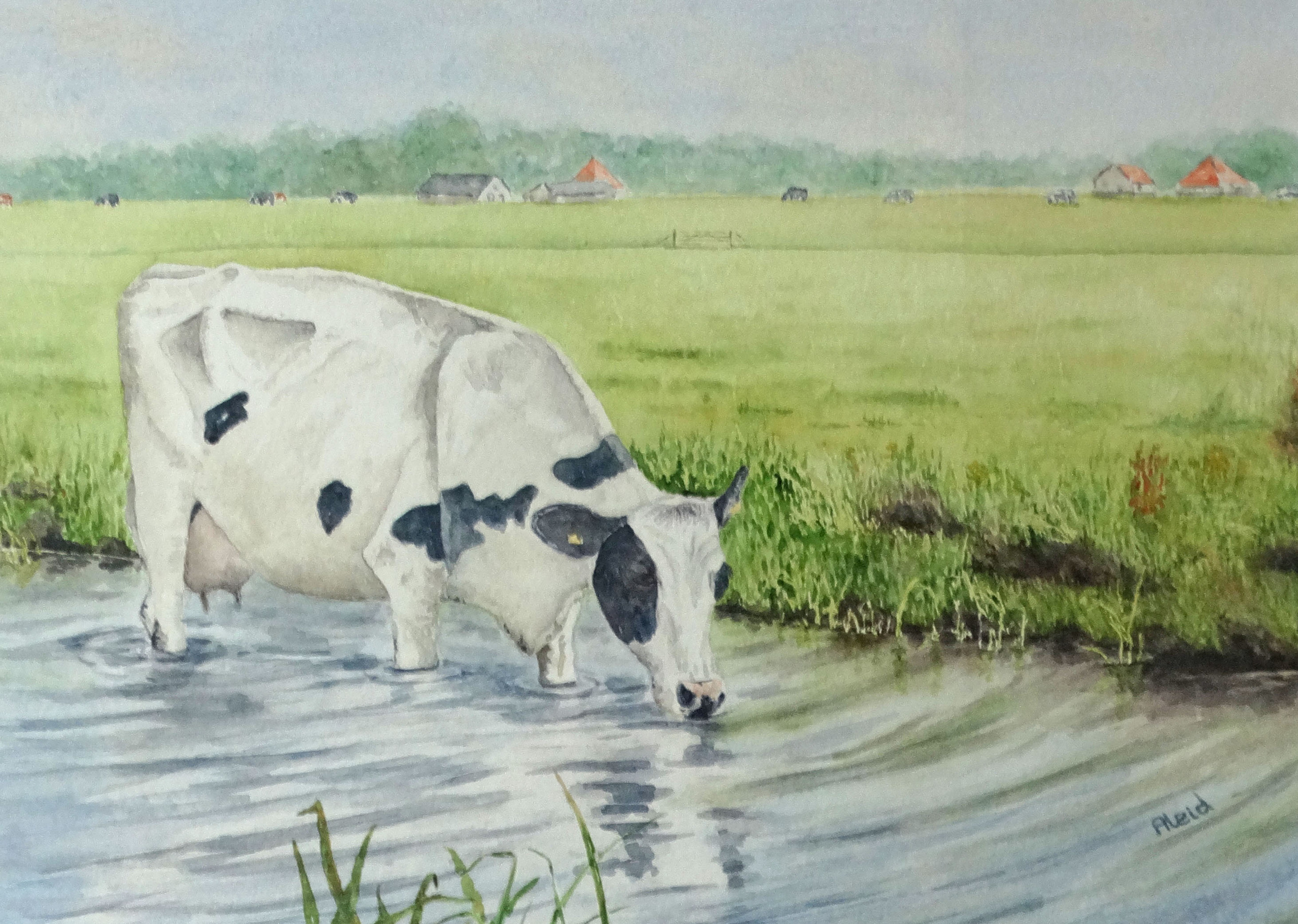 Landschap Koe Aquarel Dieren