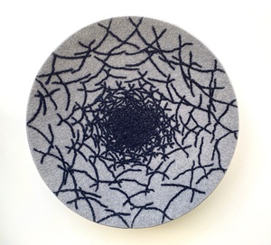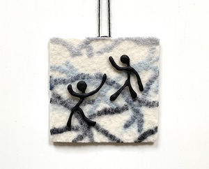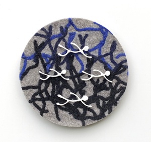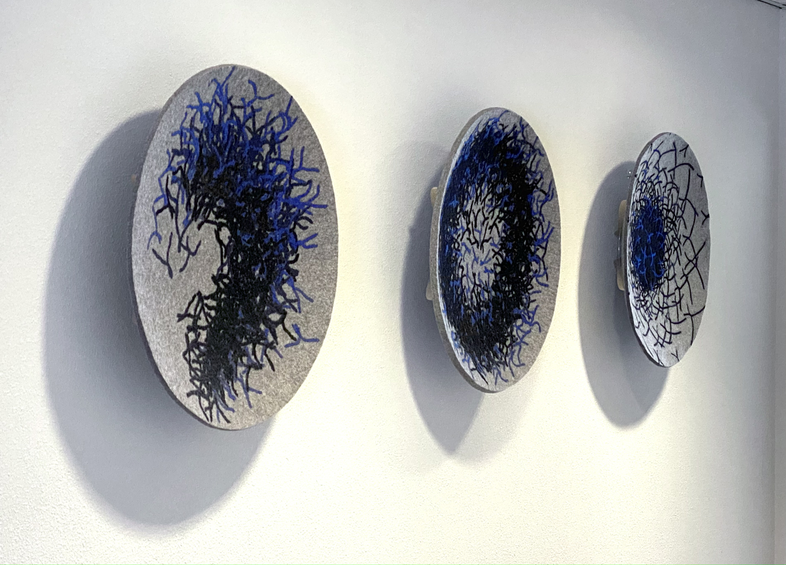 Grijs Zwart Blauw Vilt Troost Unica Geborgenheid Wandsculptuur Nabijheid Wandschaal Akoestiekverbeterend Breidraadjes
