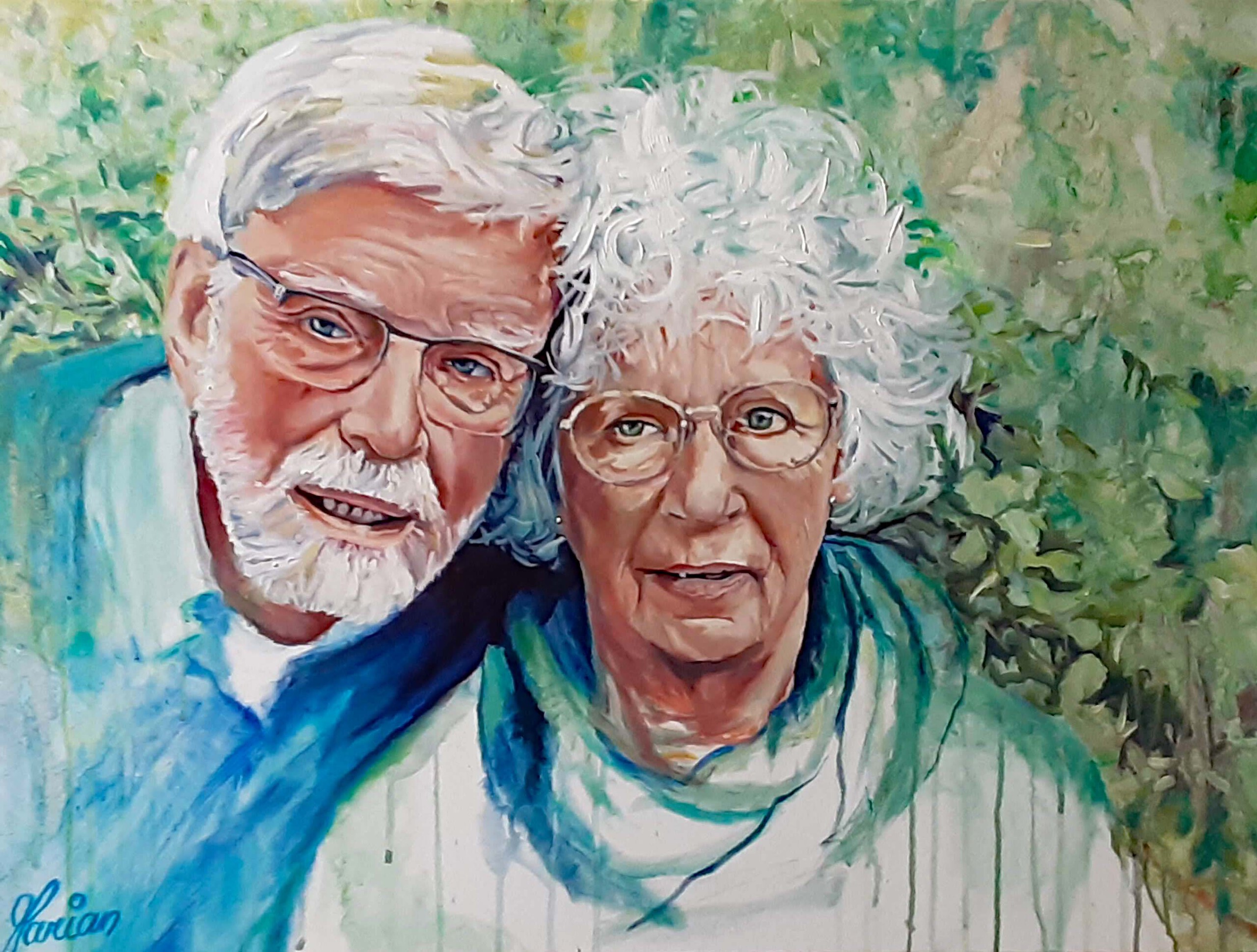 Dubbelportret van een echtpaar. Ik ben benieuwd waarover zij zich verwonderen. Achtergrond heb ik alleen aangegeven, gezichten uitgewerkt.