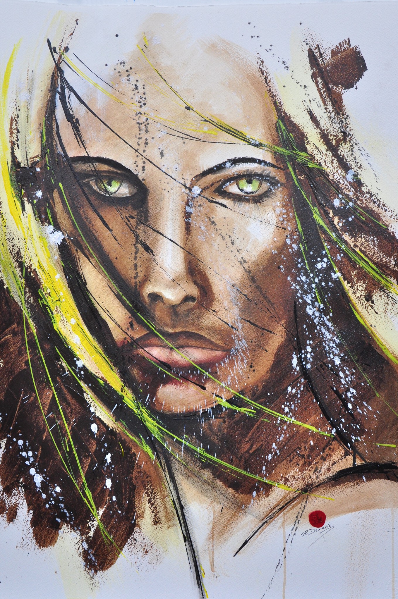 Portret van een jonge vrouw in Acryl en chinese inkt