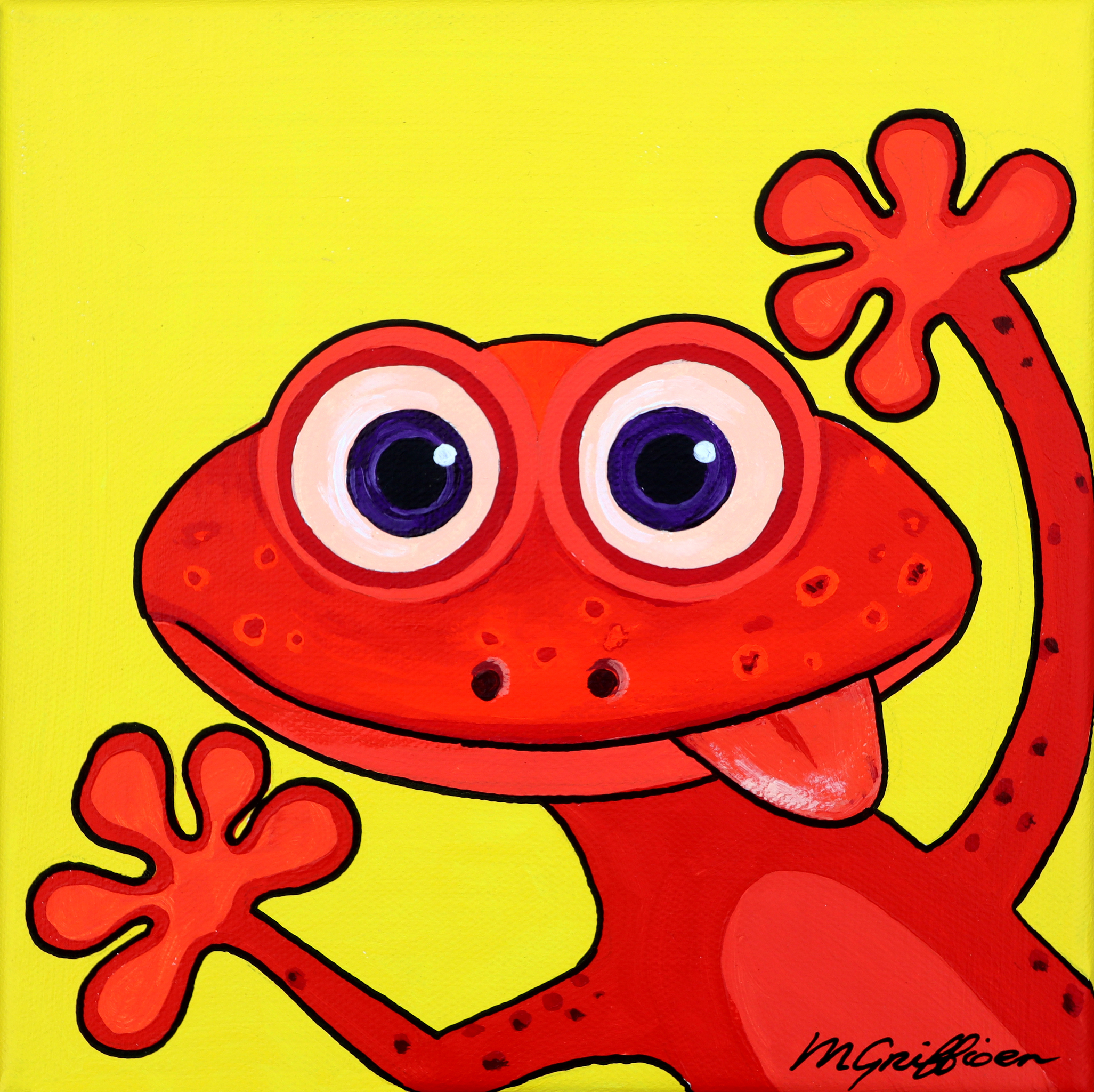 Schilderij Rood Geel Acryl Kleurrijk Kikker Vrolijk Frog Crazy Blij Grappig Illustratie Kinderkunst Panama Reptile Reptiel Mirjamgriffioenart Mirjamgriffioen Caribbeanartist Rodekikker