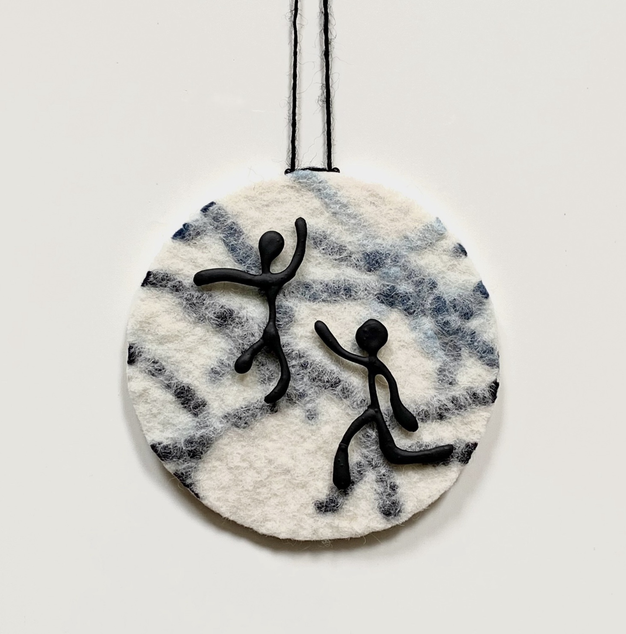 Grijs Zwart Lichtblauw Vilt Troost Unica Geborgenheid Porselein Wandsculptuur Nabijheid Wolwit Wandschaal Breidraadjes