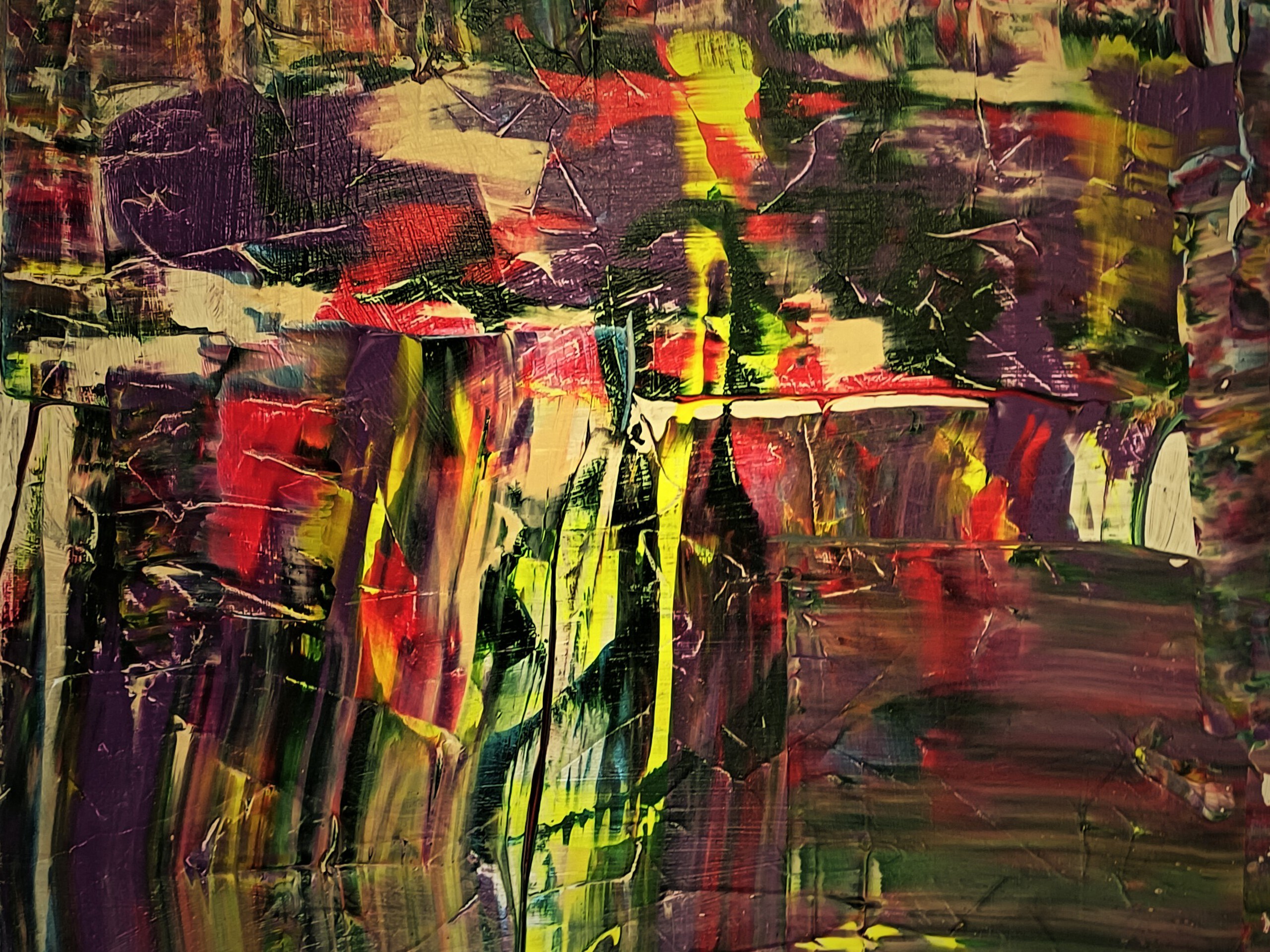 Abstract schilderij. Acrylverf en gesso. Eigen interpretatie. 40 x 40 cm.