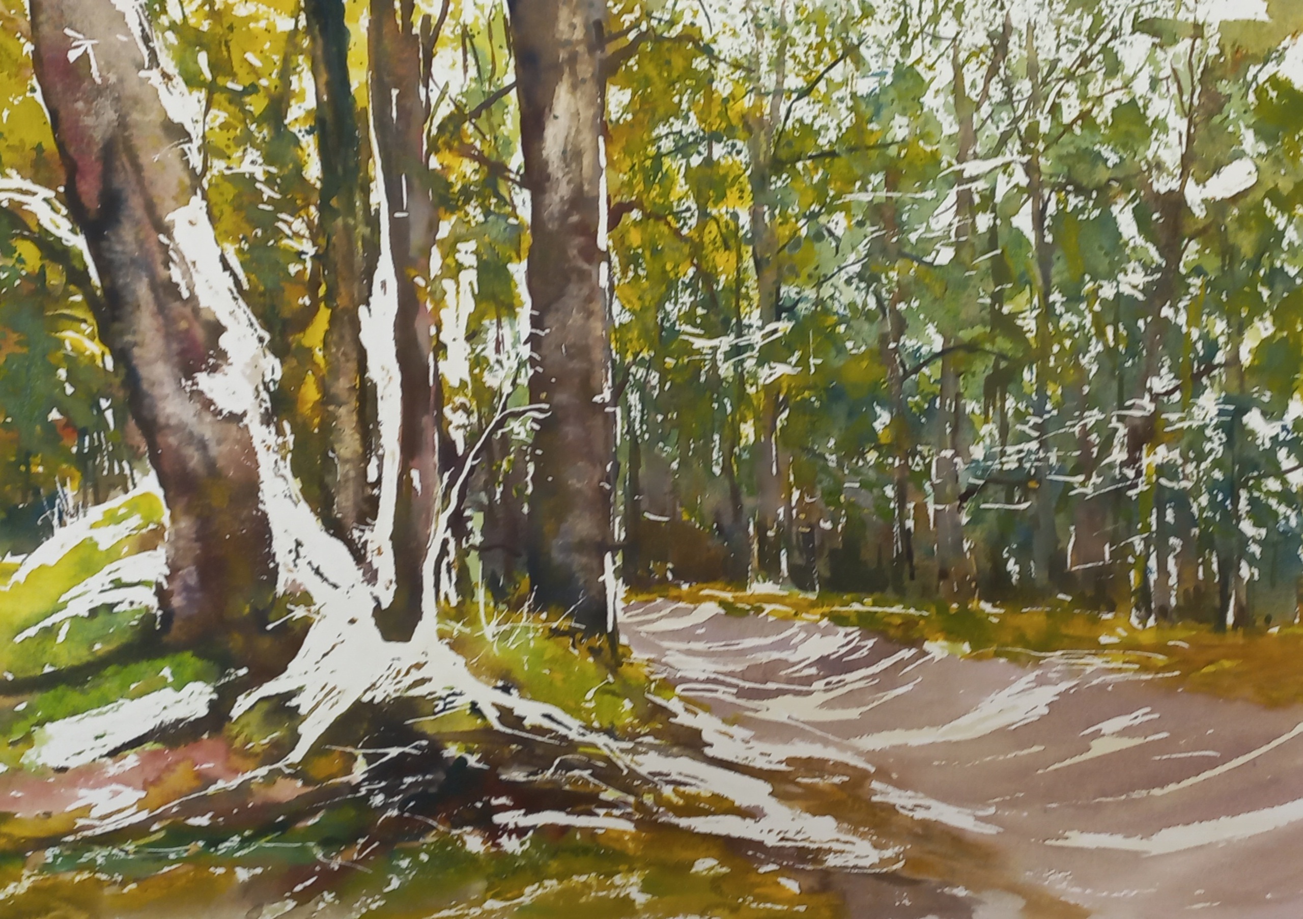 Realistische aquarellen en olieverf schilderijen van Hollands landschap, met altijd expressieve luchten boven de lage horizon zich spiegelend in de waterrijke polder. Ook werken uit de Franse Morvan en van de Oostelijke Algarve in Portugal.