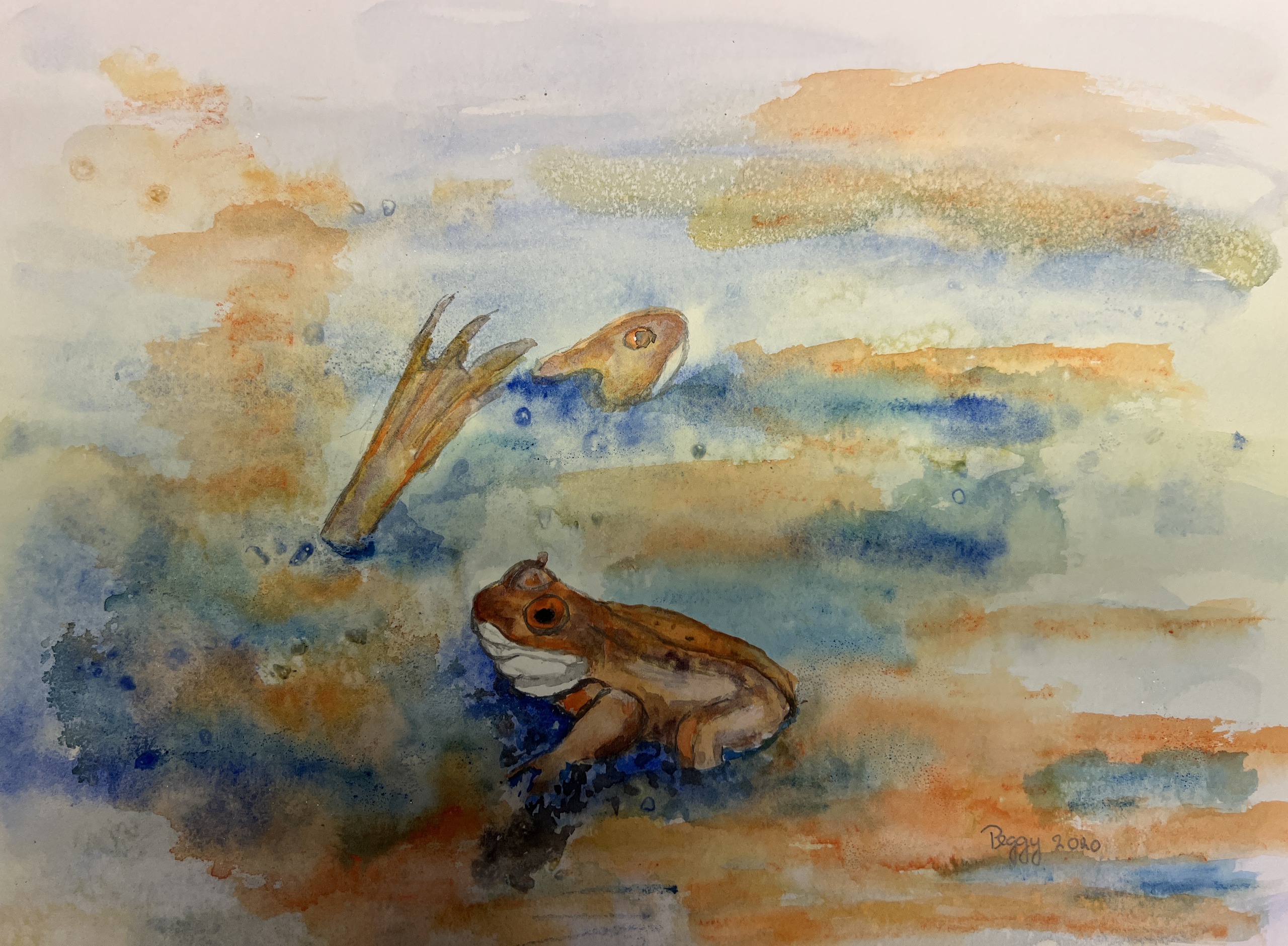 Daar ik dagelijks uren in de natuur loop wilde ik dit laten zien op papier en aquarelle verf. De rust en de stilte wat het uitstraalt aan de waterpoel vol met kikkerdril en kwakende kikkers dit is genieten. Je moet het nog wel inlijsten. gesigneerd Ik gebruikte dit medium omdat het zo lekker uitvloeit en niet wetende welke kant het opgaat Hoogte 26 x breedte 36 cm