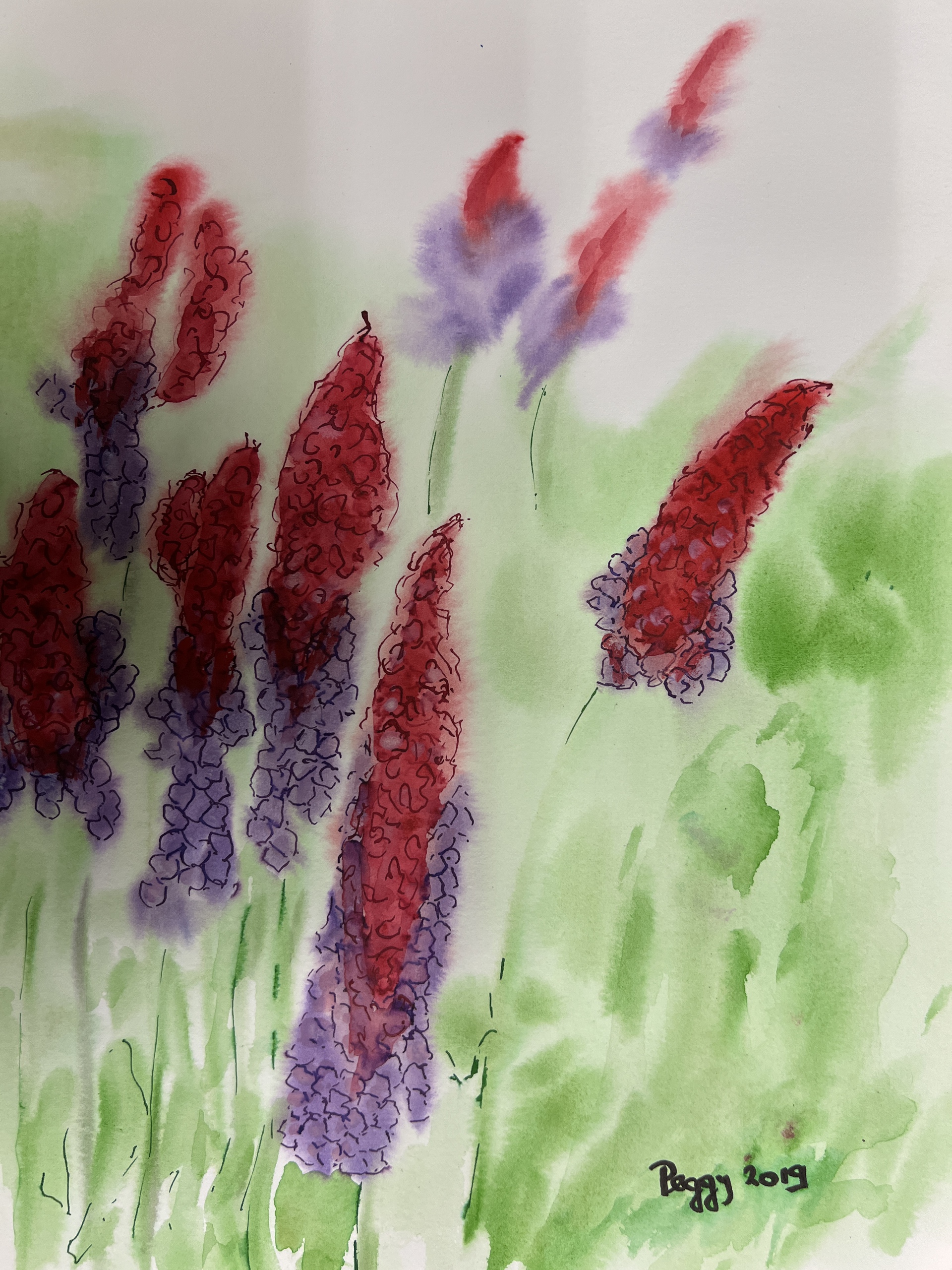 Daar ik dagelijks uren in de natuur loop wilde ik dit laten zien op papier en aquarelle verf. De rust en de stilte wat het uitstraalt de bloemen in het veld. Geniet van het schilderij. Je moet het nog wel inlijsten. Gesigneerd Ik gebruikte dit medium omdat het zo lekker uitvloeit en niet wetende welke kant het opgaat Hoogte 36 x breedte 26 cm