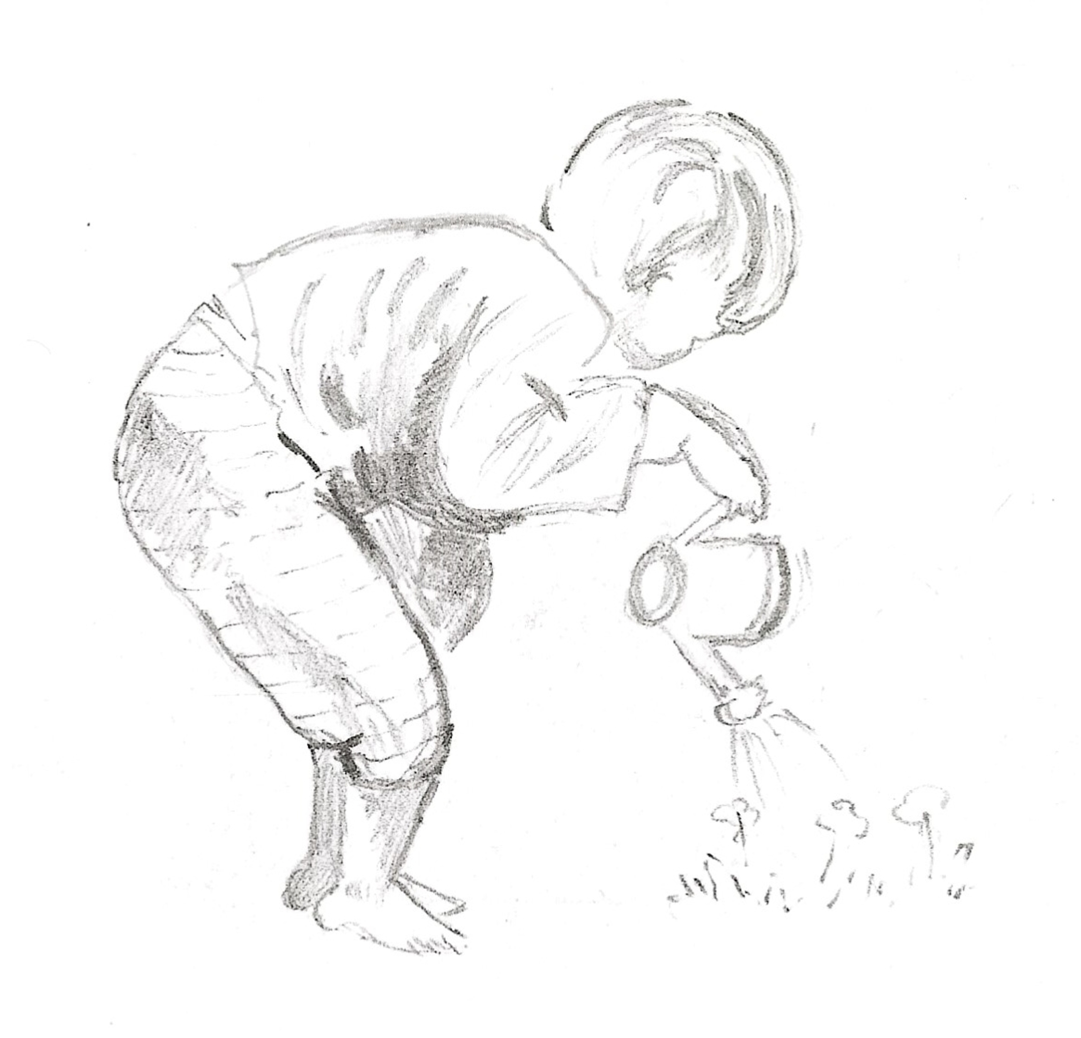 Klein kind met een waterkan in potlood