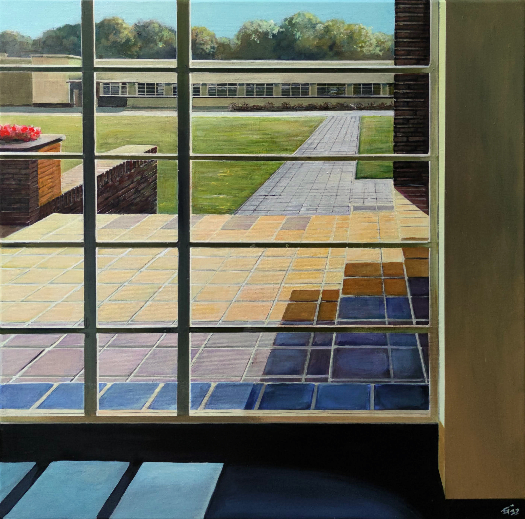 Zicht vanuit het venster in de gang vanuit het Hilversumse Raadhuis.