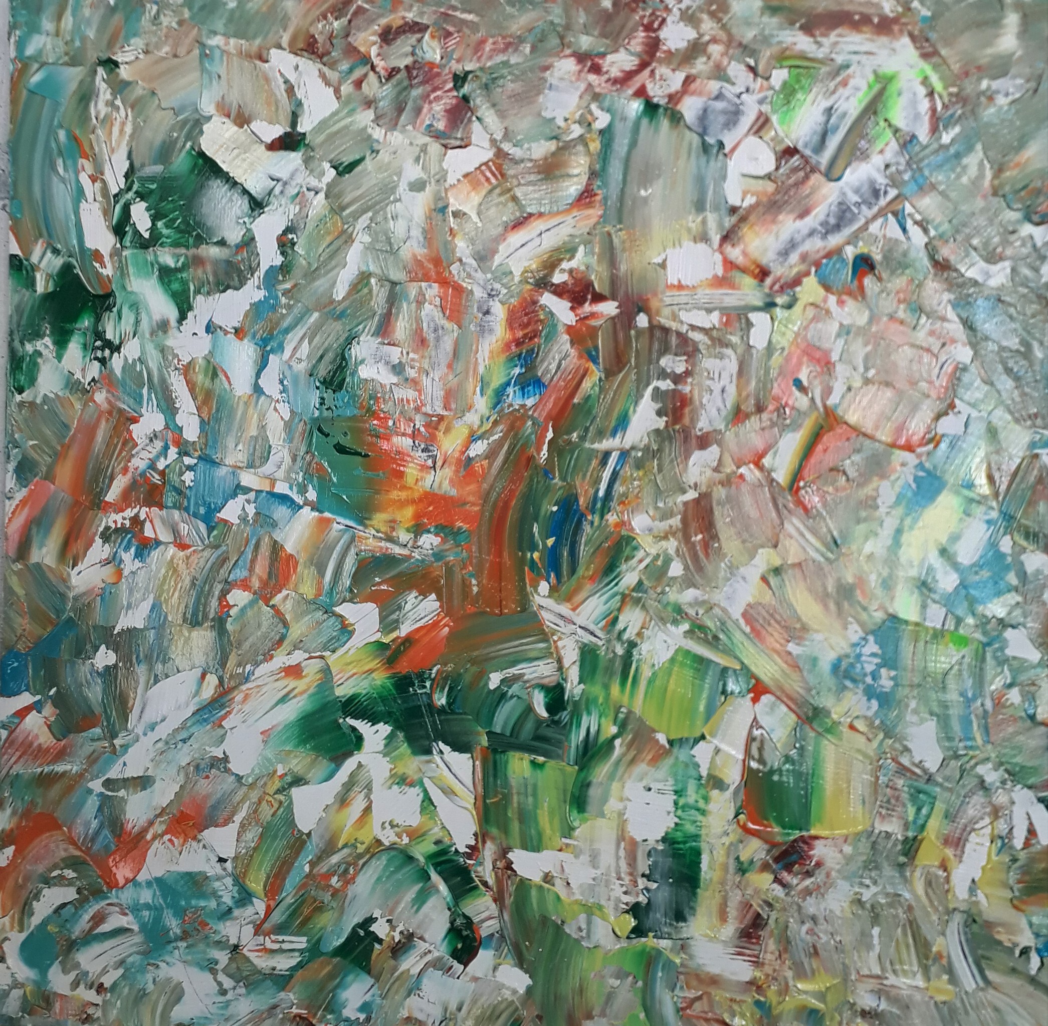 Abstract schilderij (paneel, acrylverf). 50 x 50 cm